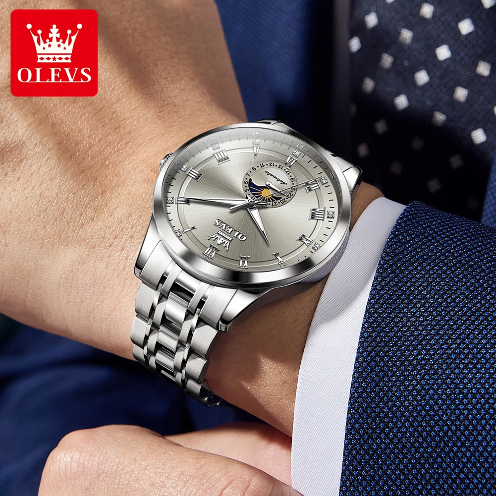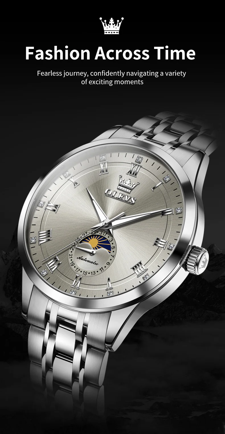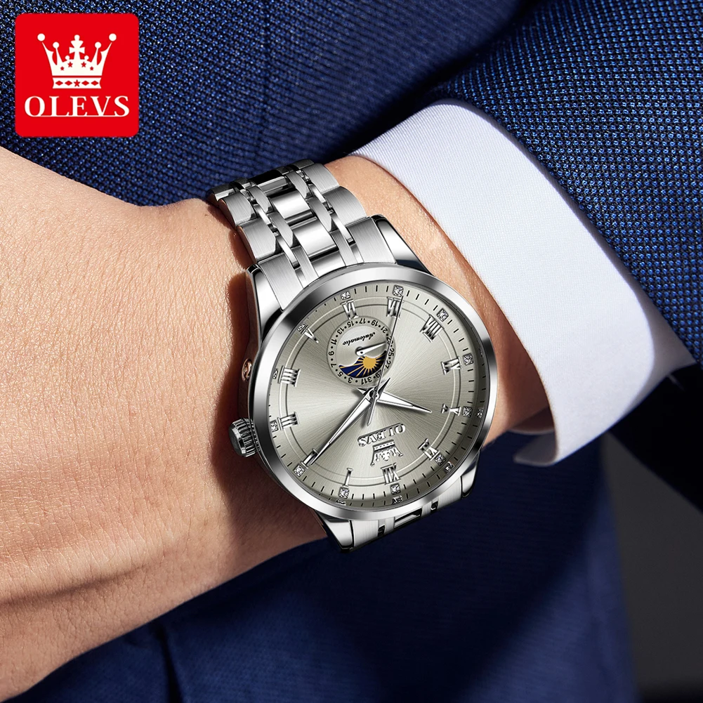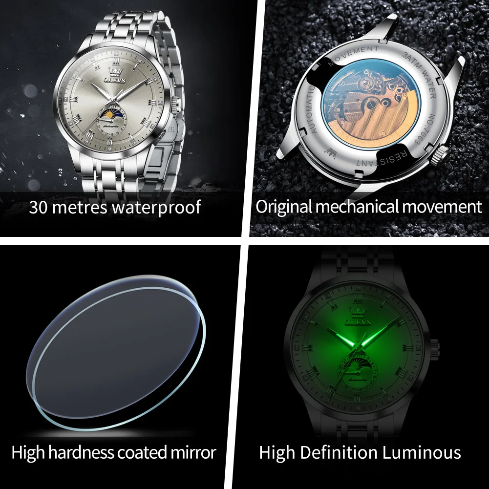 OLEVS 7063 Luxury Men Original Fully Automatic Mechanical Watch Fashion Luminous Moon Phase Waterproof Clock Business Men Watch