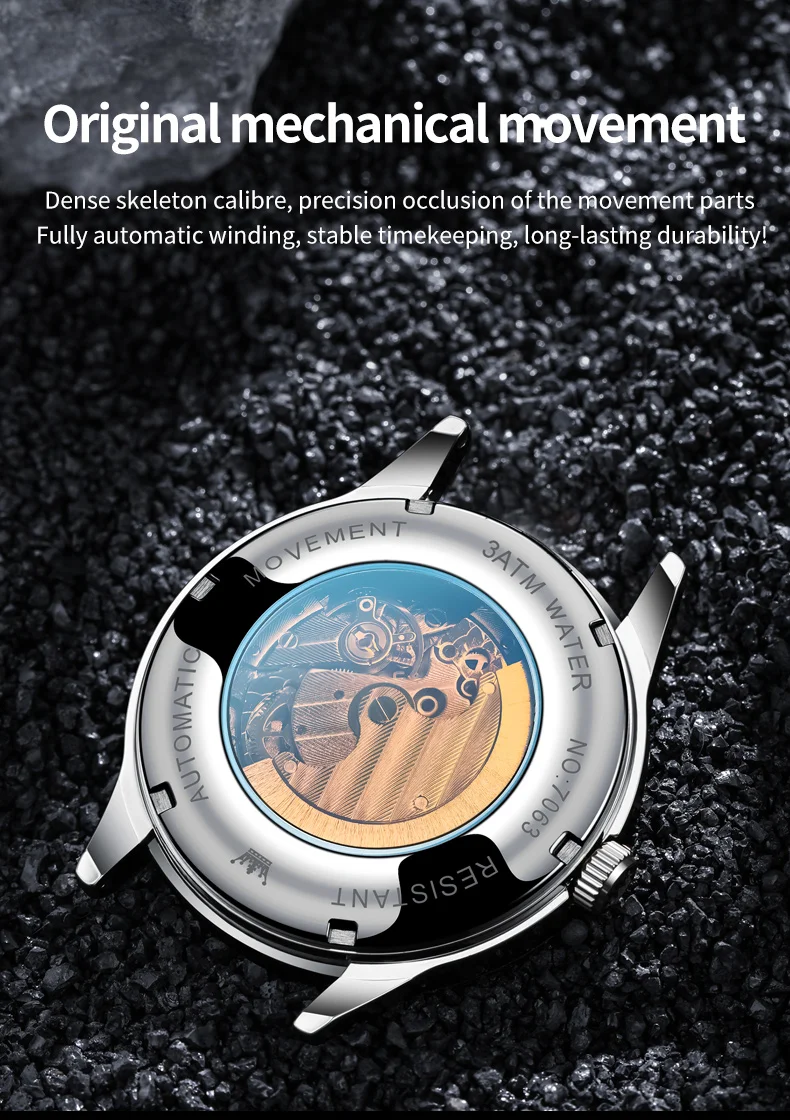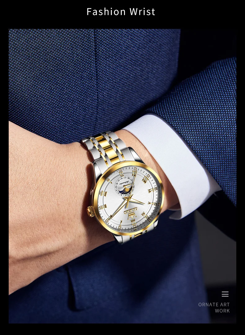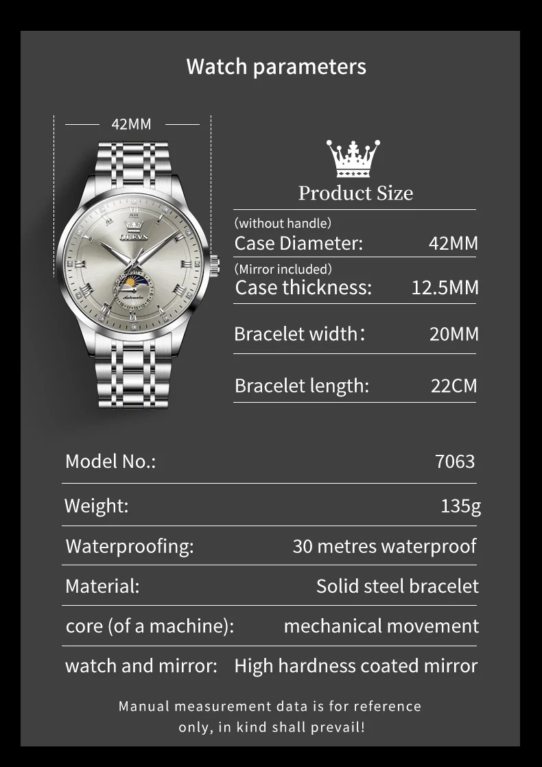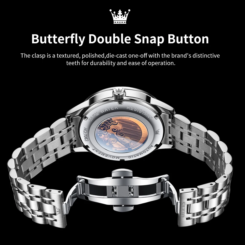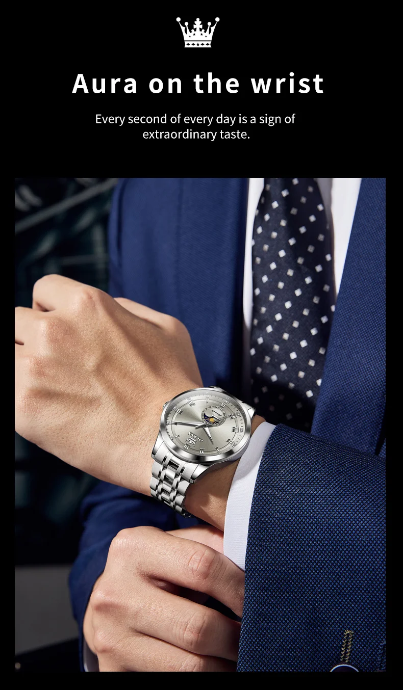 OLEVS 7063 Luxury Men Original Fully Automatic Mechanical Watch Fashion Luminous Moon Phase Waterproof Clock Business Men Watch