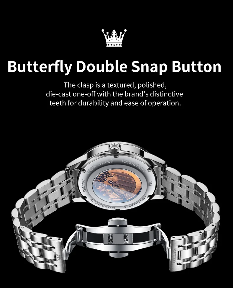Original OLEVS Automatic Watch for Men Date Calendar Skeleton Hollow Stainless Steel Business Wristwatch Men Mechanical Watch