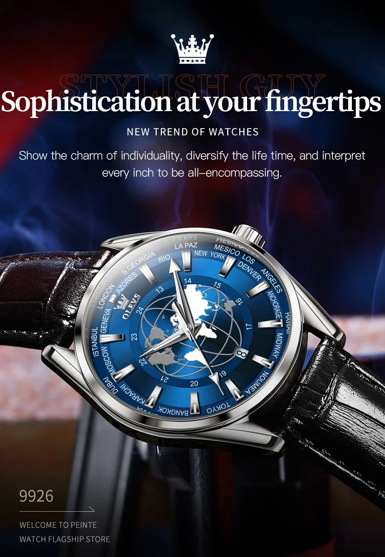 OLEVS 9926 Fashion Quartz Watch Leather Watchband Round-dial Wristwatch Calendar Luminous