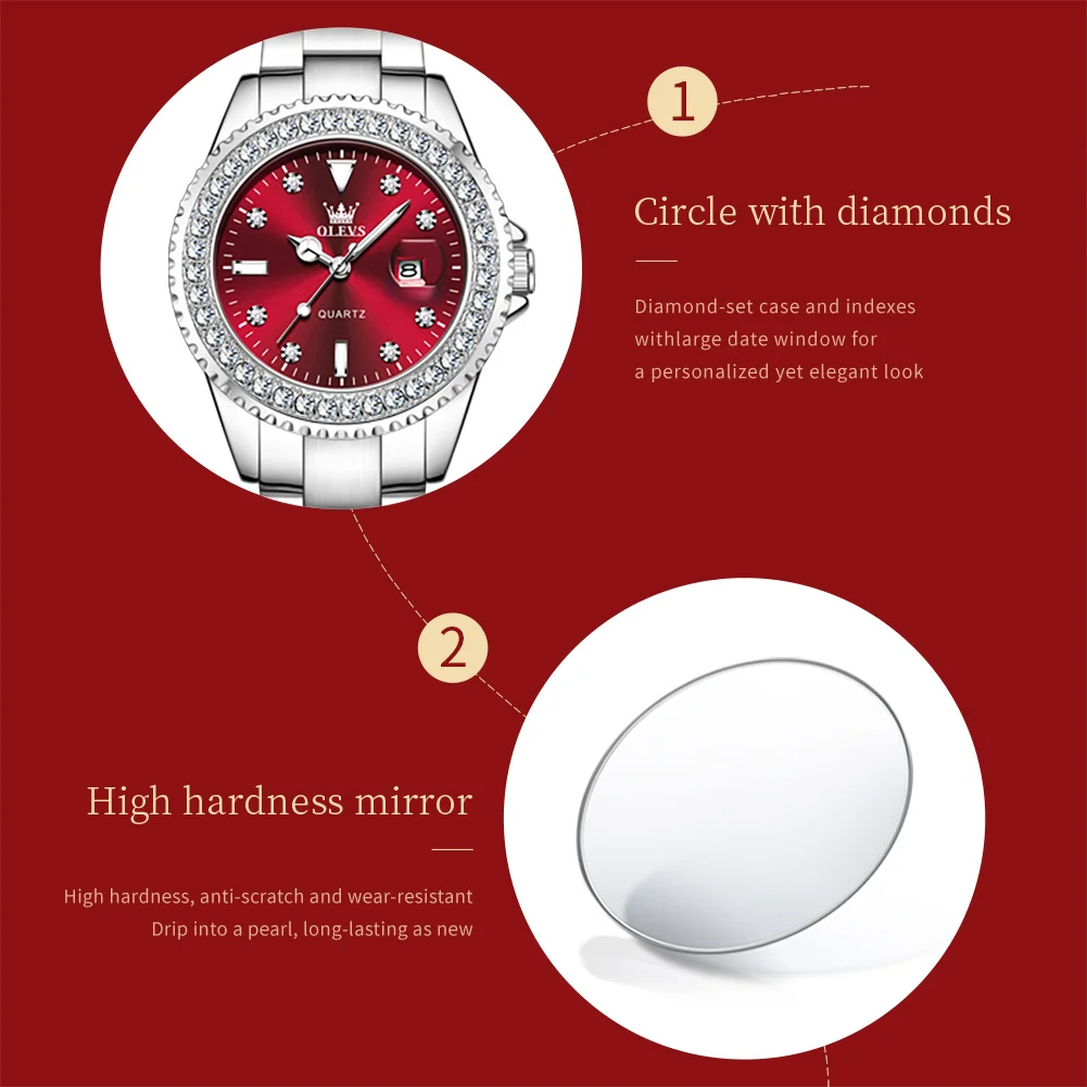 OLEVS Original Diamond Dial Quartz Watch for Women Fashion Ladies Watches Stainless Steel Waterproof Luminous Women’s Wristwatch