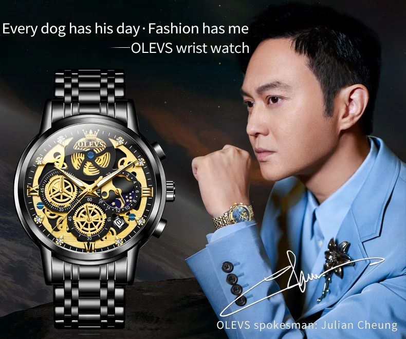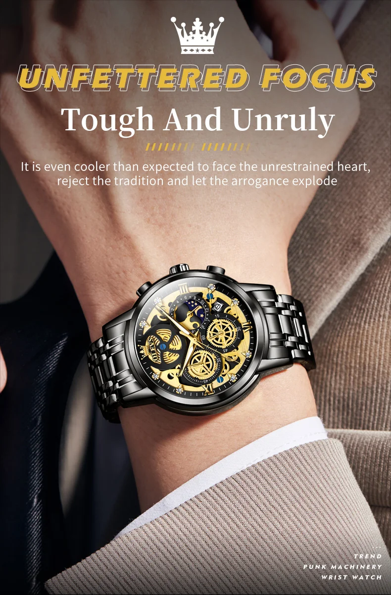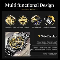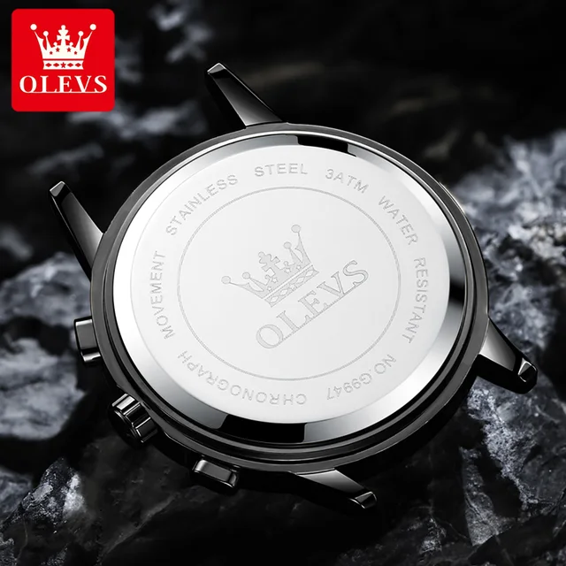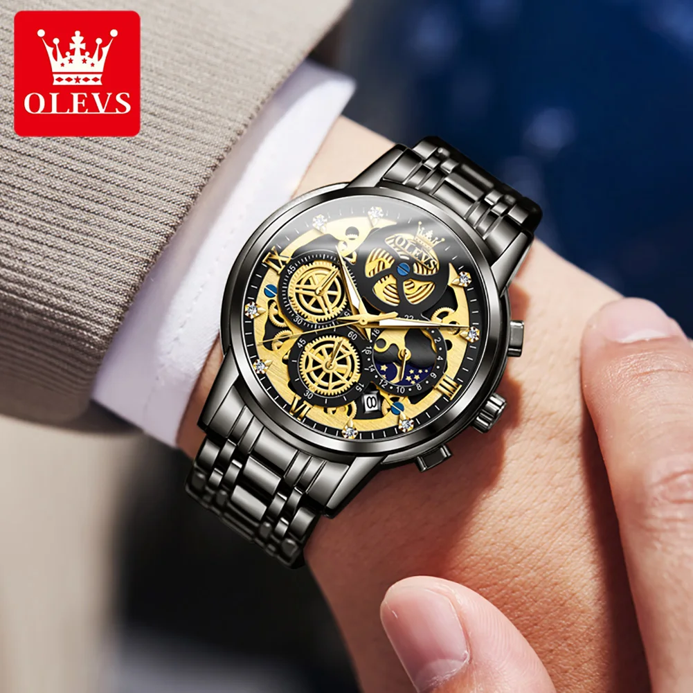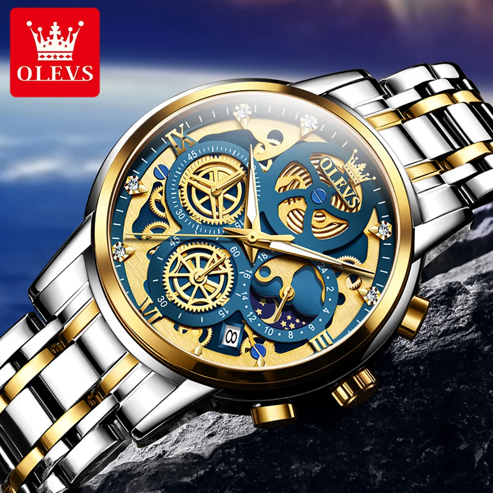 OLEVS 3609 Original Moon Phase Chronograph Watch for Men Leather Waterproof Luminous Luxury Quartz Mens Wristwatches Reloj Mujer