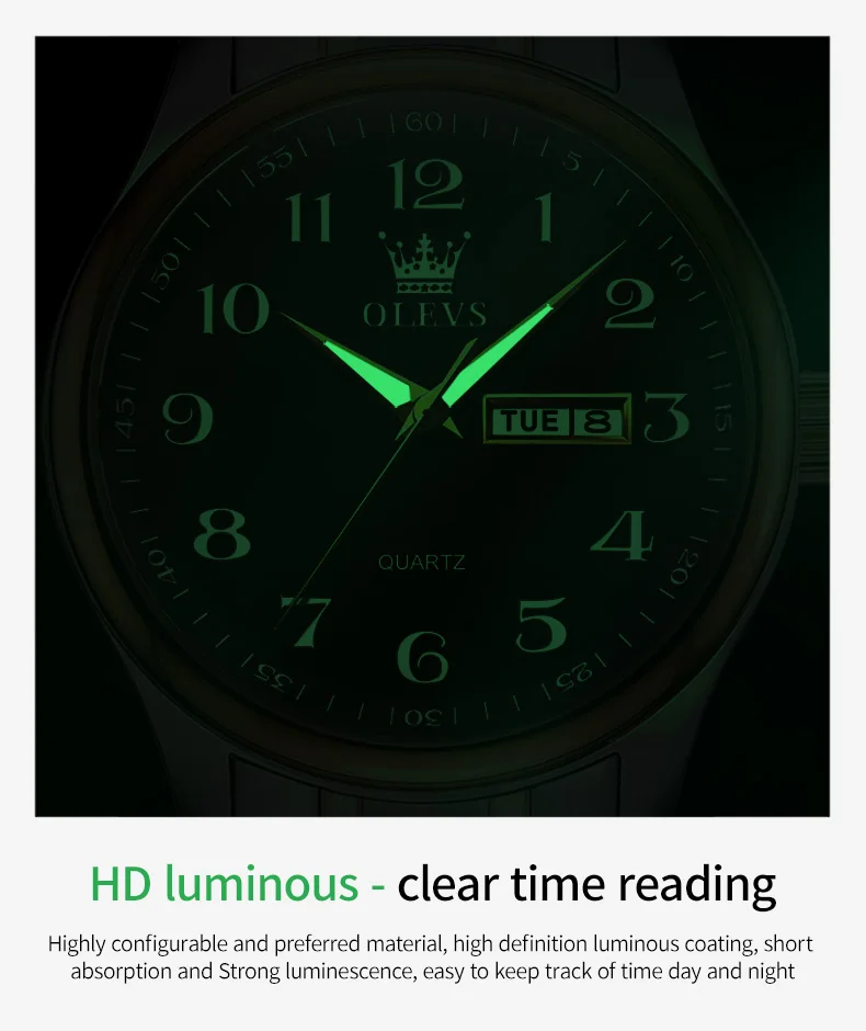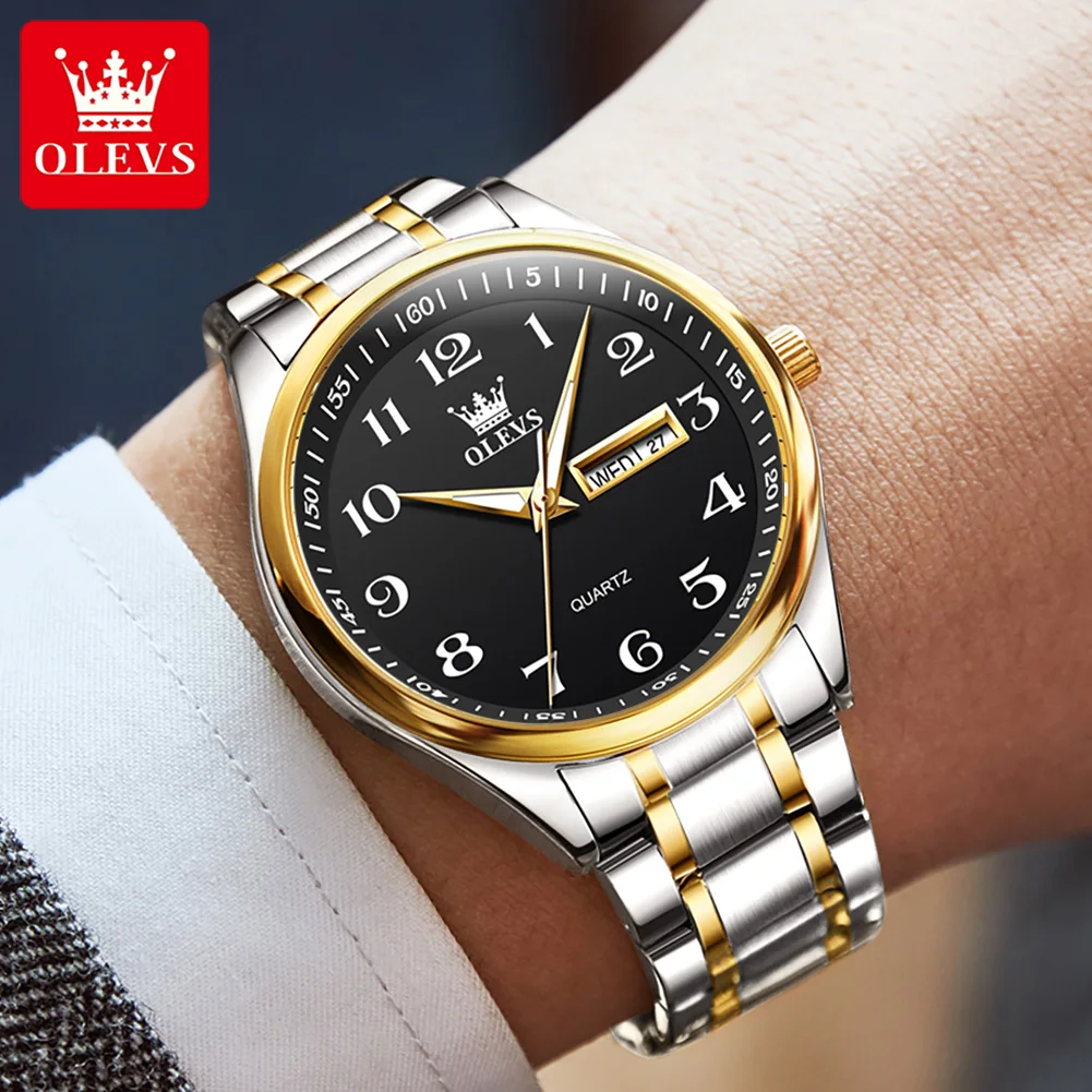 OLEVS 5567 Date Week Display Clock Waterproof Mens Wristwatch Luminous Luxury Stainless Steel Quartz Watch for Men Reloj Hombre