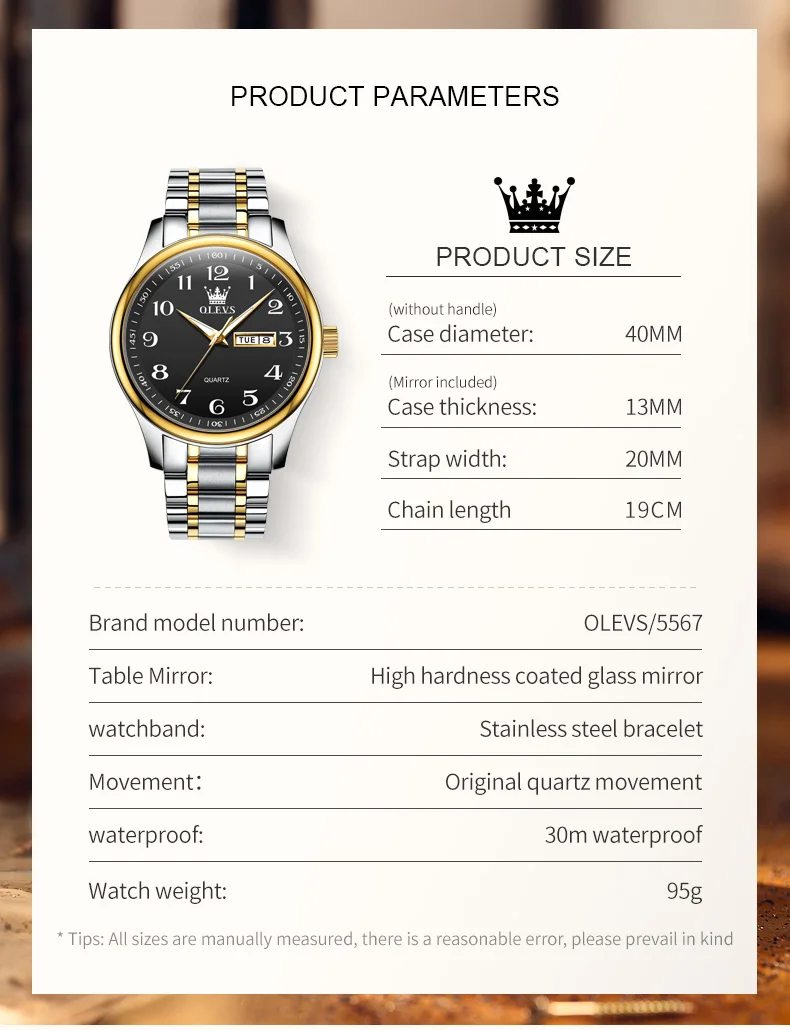 OLEVS Brand Men’s Watch Quartz Watch Calendar Week Waterproof 5567