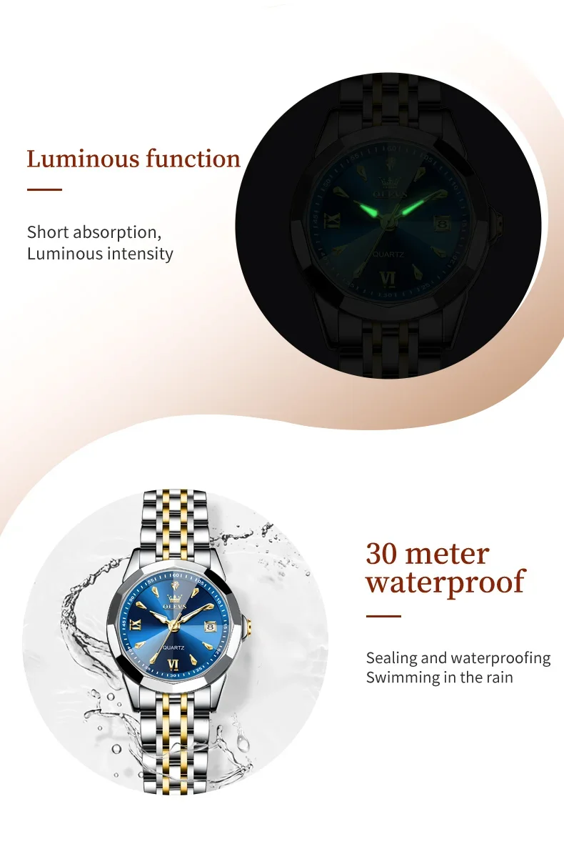 OLEVS Elegant Fashion Ladies Watch 9998 Original Quartz Women’s Watches Waterproof Stainless Steel