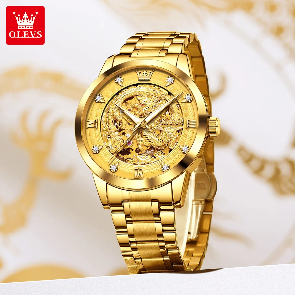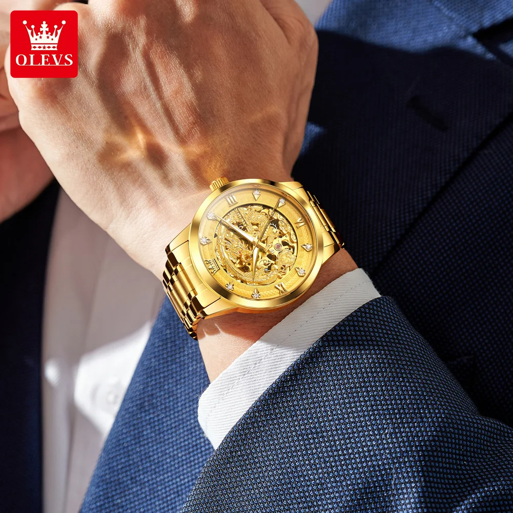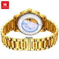 OLEVS Men's Watches Fashion Leather Strap Moon Phase Hollow Flywheel Automatic Mechanical Wristwatch Roman Scale Man Watch 9912