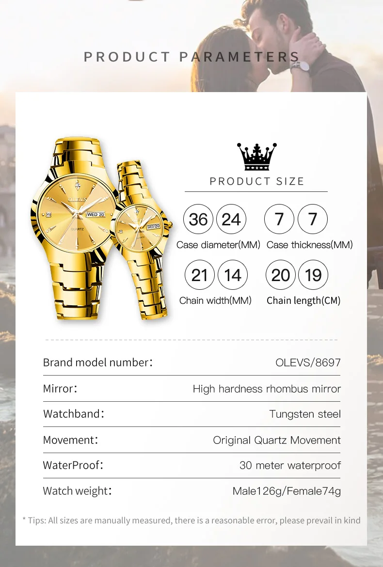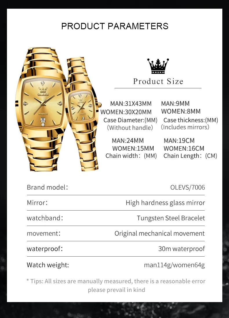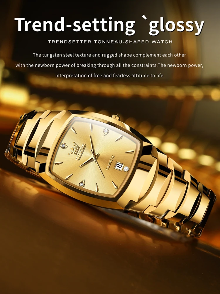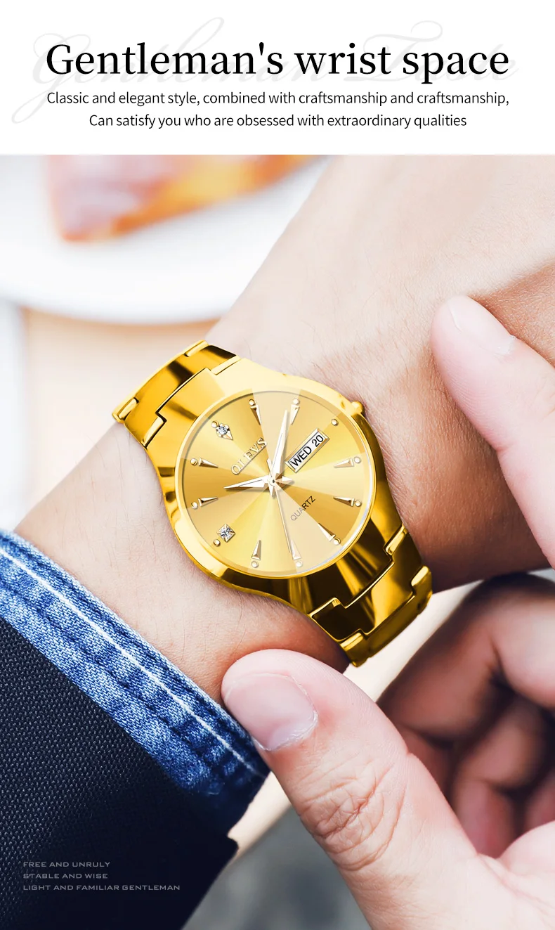 OLEVS Gold Tungsten Steel Watch for Men Women Quartz Male Wristwatch Waterproof Auto Date Fashion Casual Clock Reloj Hombre