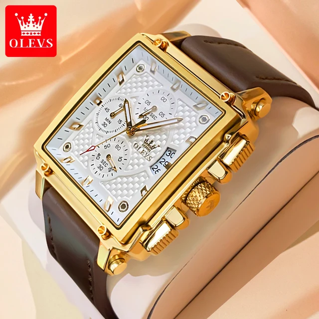 OLEVS Men’s Top Brand Square Quality Quartz Wristwatch Chronograph Waterproof Original Watch for