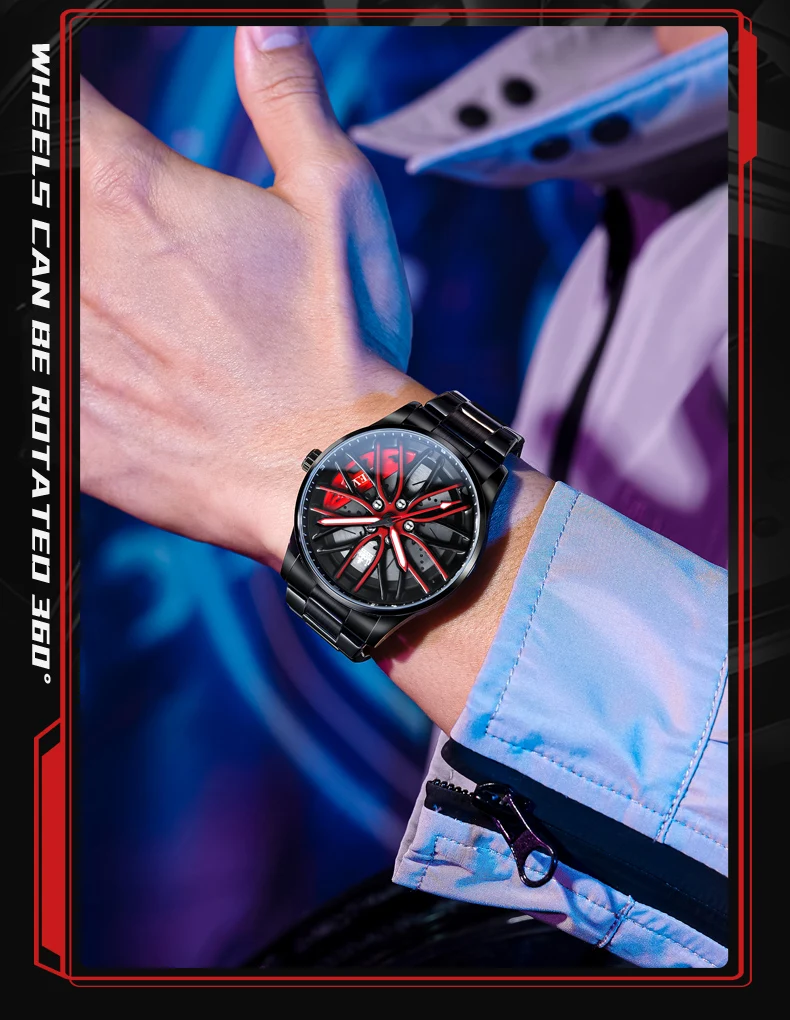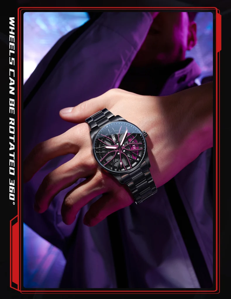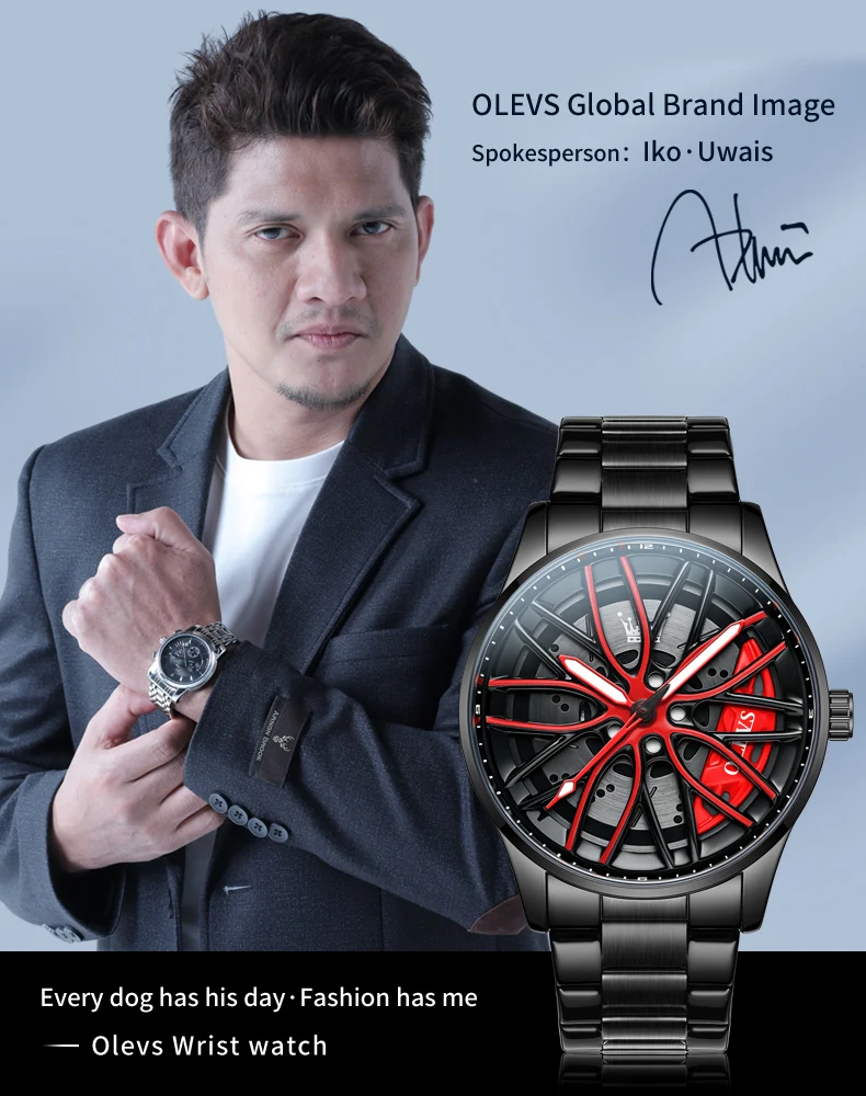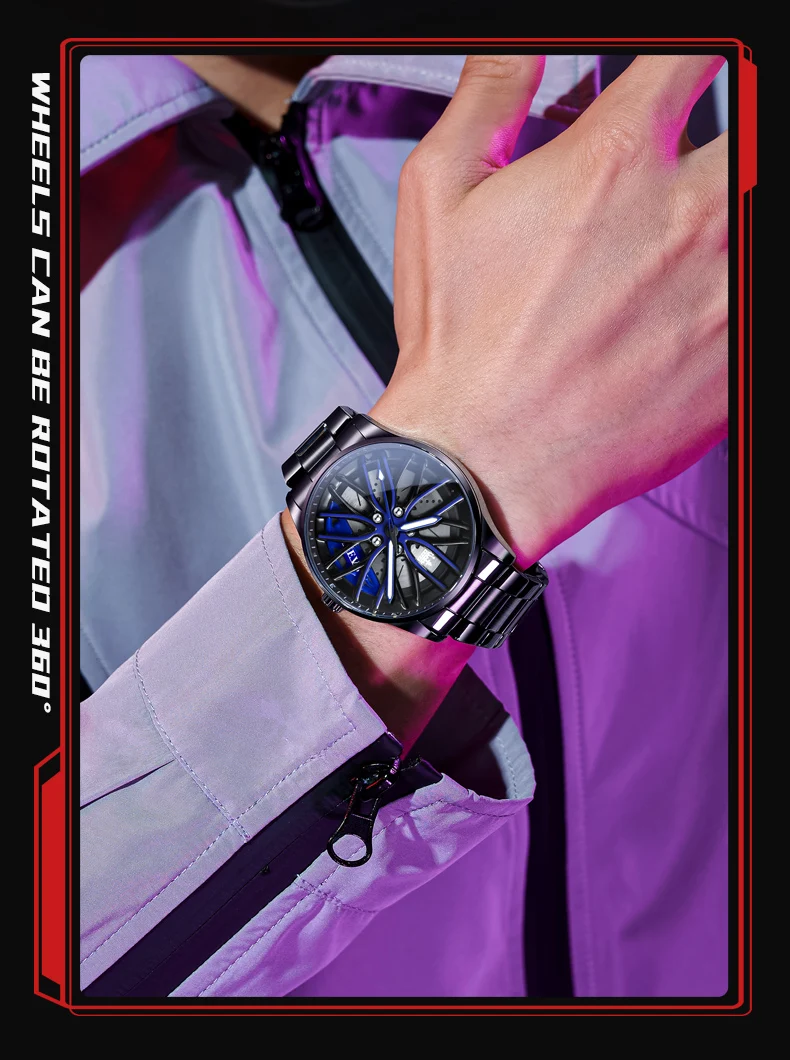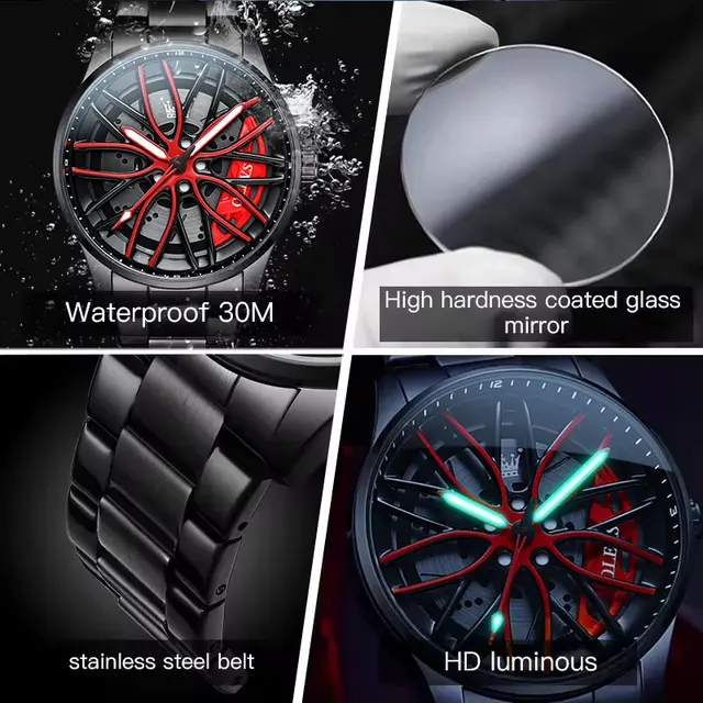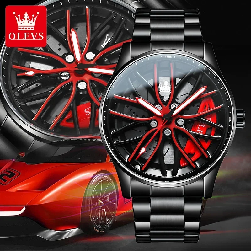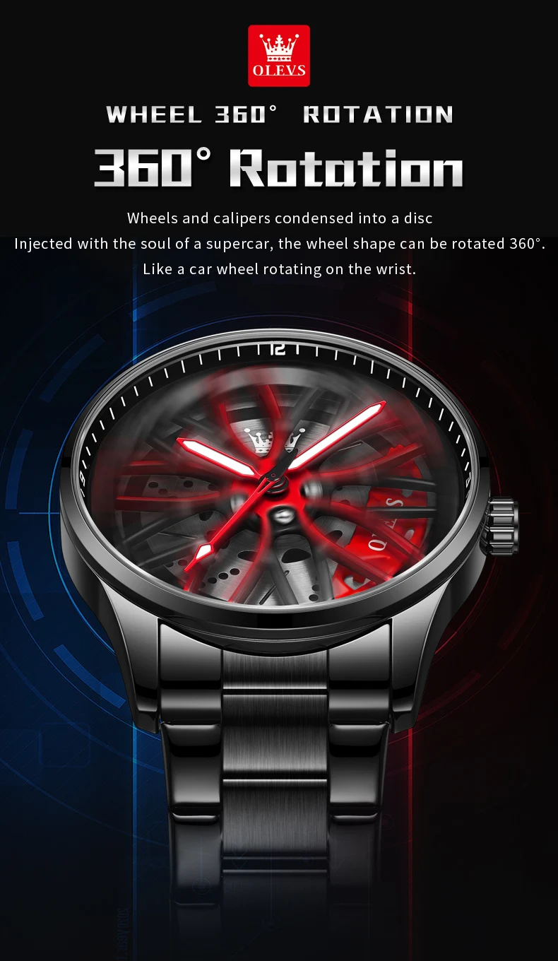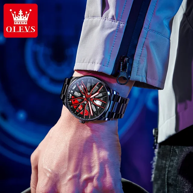 OLEVS New Top Brand Cool Men’s Watches 360 Degree Rotating Wheel Stainless Steel Rim Dial Waterproof
