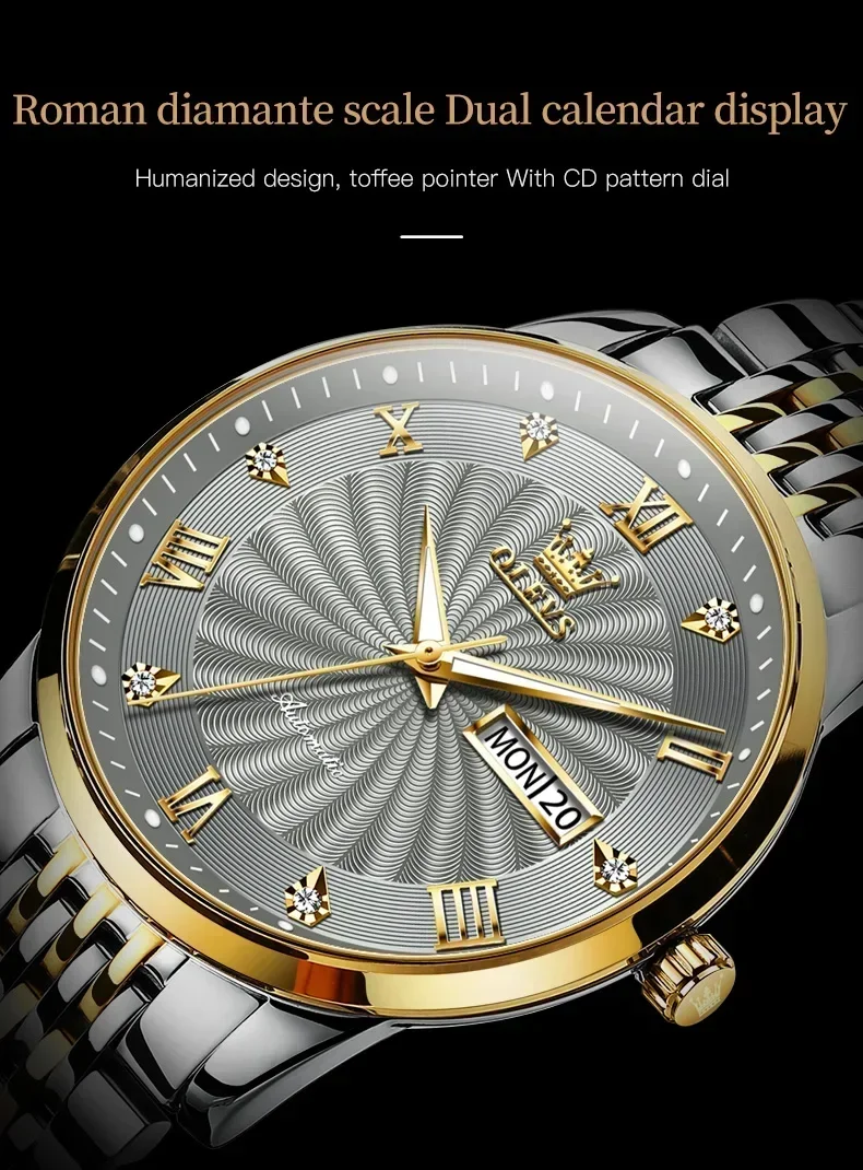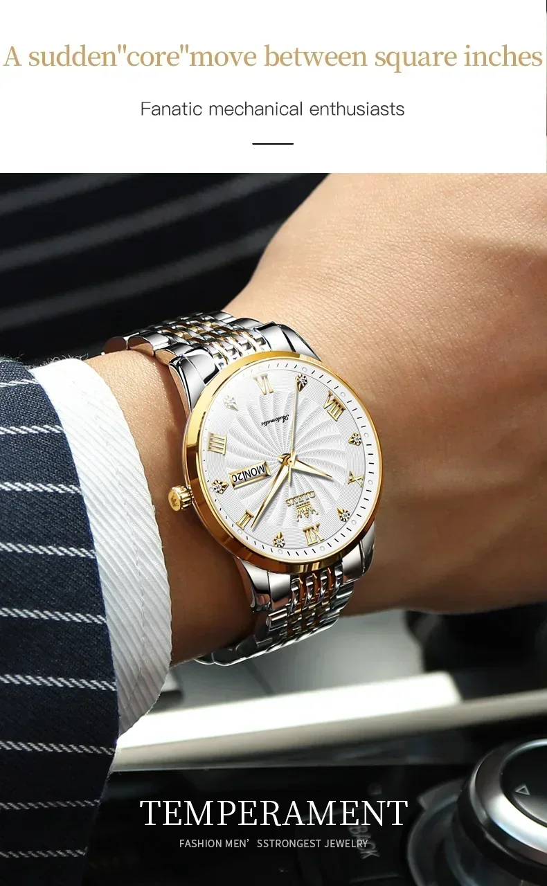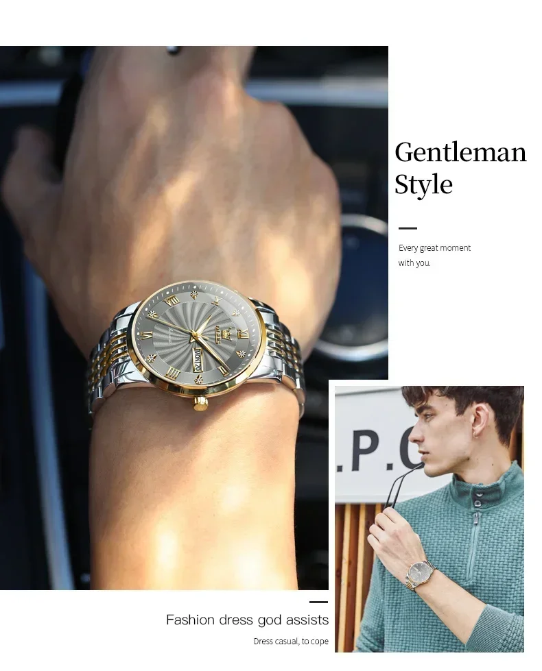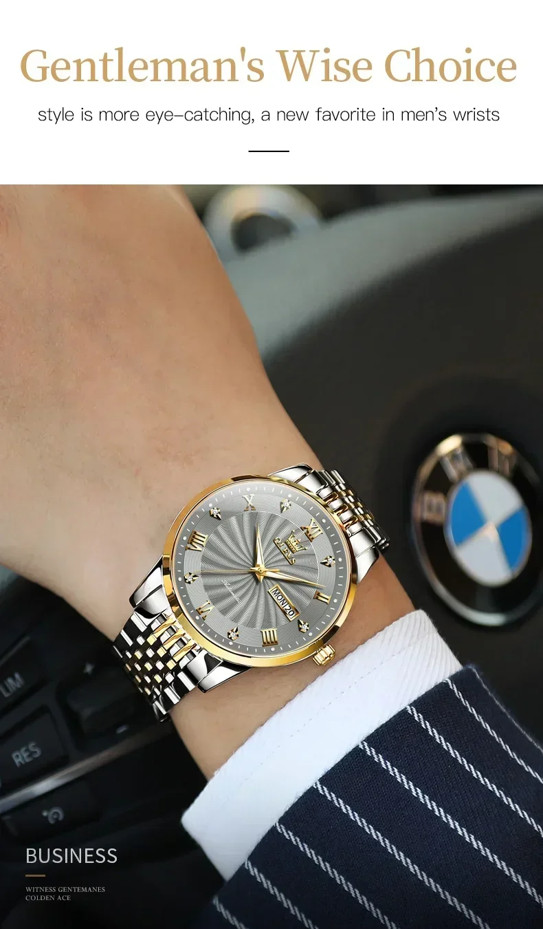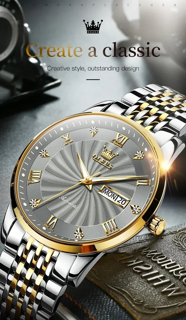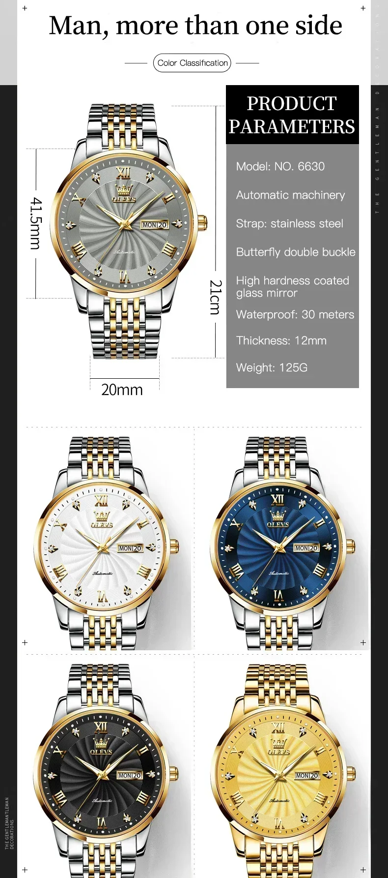 OLEVS Top Brand Automatic Mechanical Man Watch Threaded Dial Date Waterproof Stainless Steel Strap Luxury