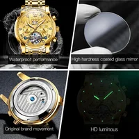 OLEVS Top Brand Men Watches Automatic Mechanical Watch 50M Waterproof Stainless Steel Skeleton Design