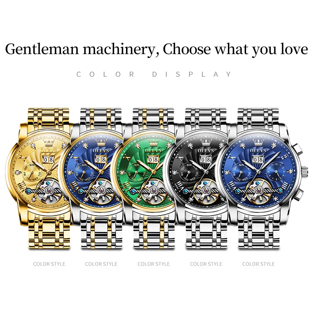OLEVS Top Brand Men Watches Automatic Mechanical Watch 50M Waterproof Stainless Steel Skeleton Design Watches Reloj de hombre