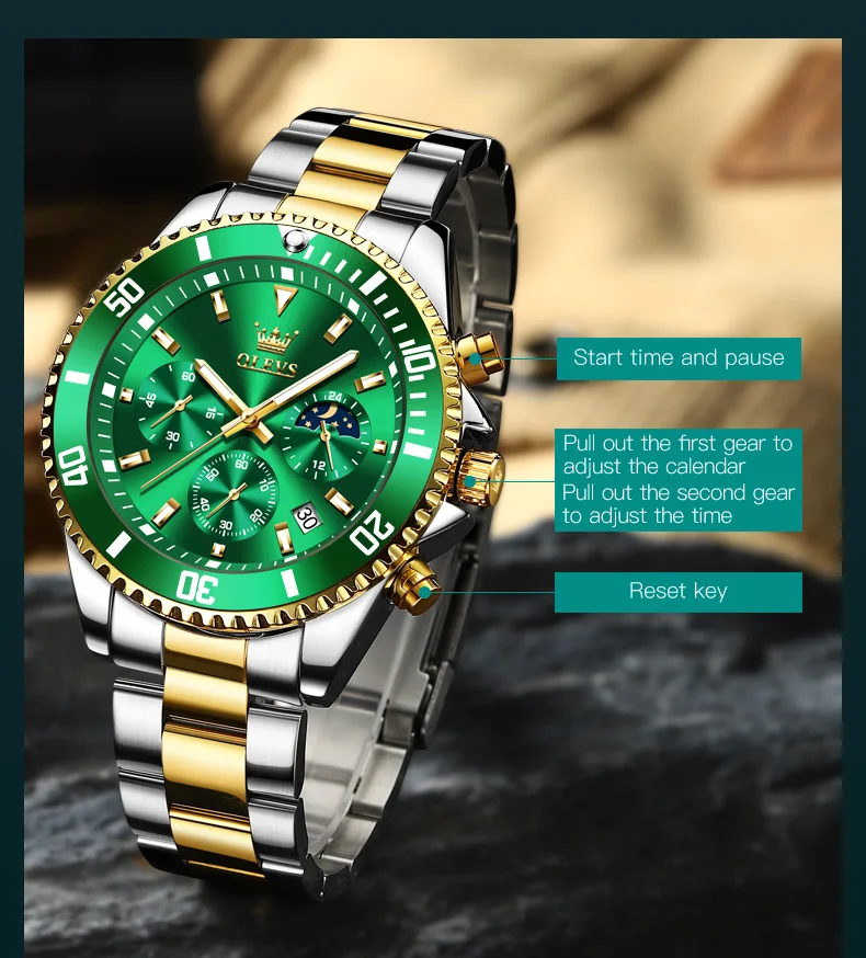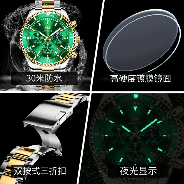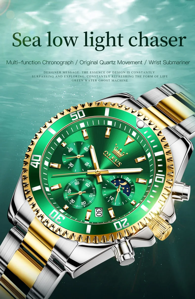 OLEVS 5538 Fashion Original Brand Men's Watches Moon Phase Starry Sky Dial Quartz Watch for Man Luminous Chronograph Wristwatch