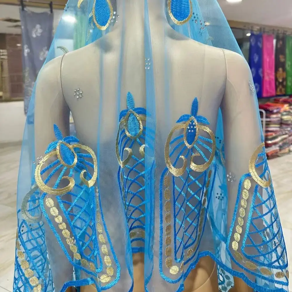 on sale 2025 New African Net Hijab Scarf For Muslim Women African Dubai Islam Headscarf Embroidery Shawls