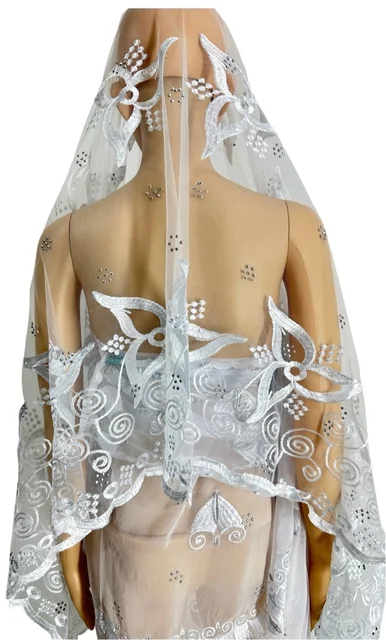 Delicate Chinese Wedding Bridal Veil With Embroidery Pattern Veil Tulle Xiuhe Clothing Sequin Full Lace Embroidery Edge Hijab