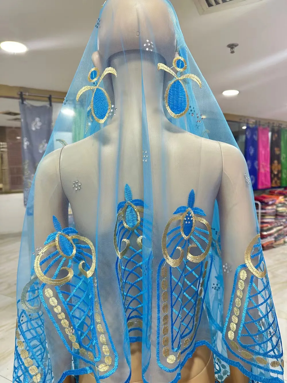 on sale 2025 New African Net Hijab Scarf For Muslim Women African Dubai Islam Headscarf Embroidery Shawls