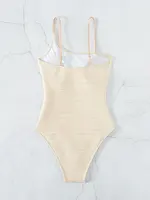 Contrast Mesh One Piece Swimsuit, V Neck Solid Color Backless Tummy Control High Cut Bathing Suit, Women's Swimwear & Clothing