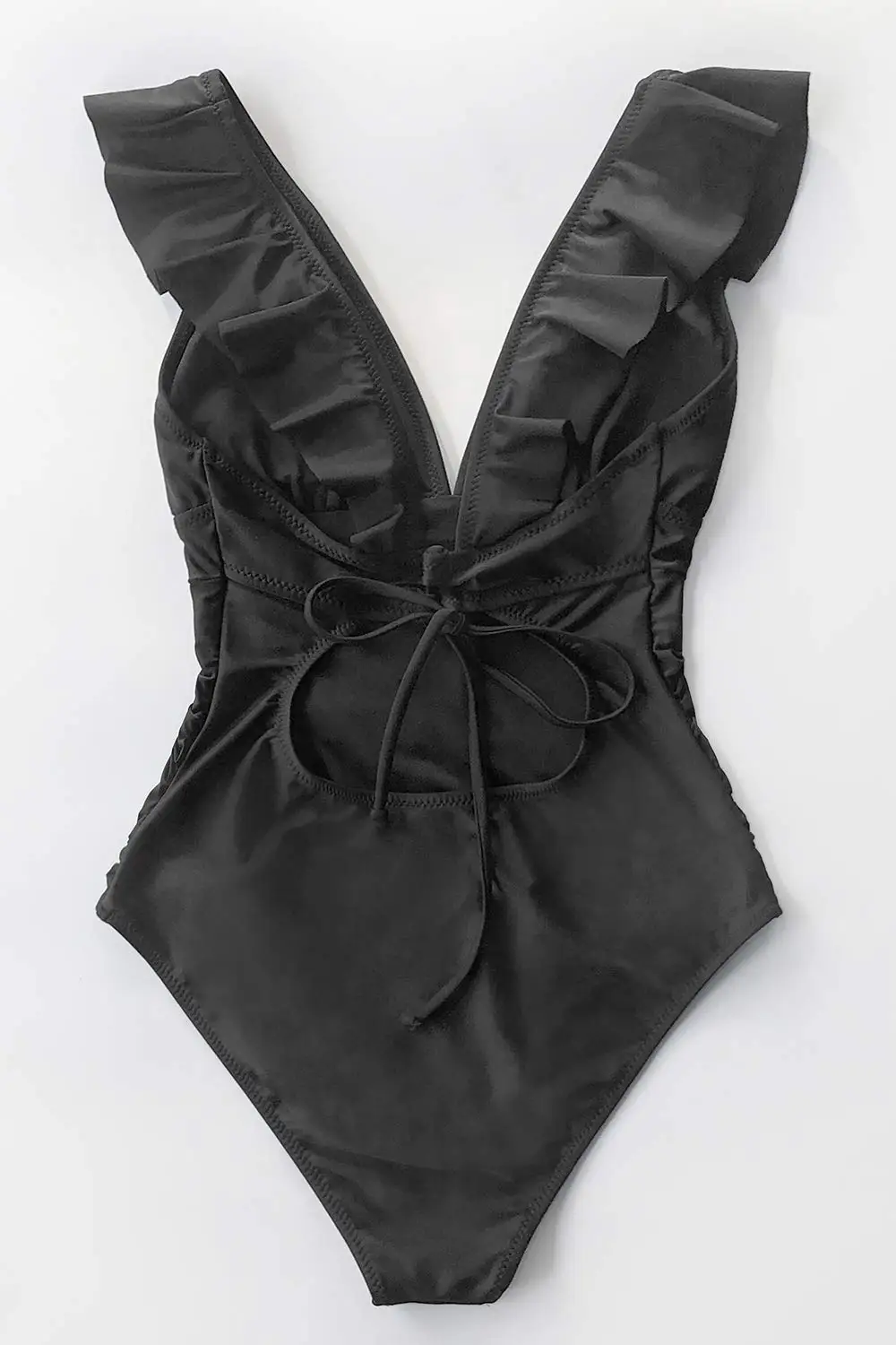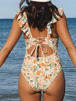 Design: This Women Tummy Control One Piece Swimsuit Features Ruffle and Back Tie Design