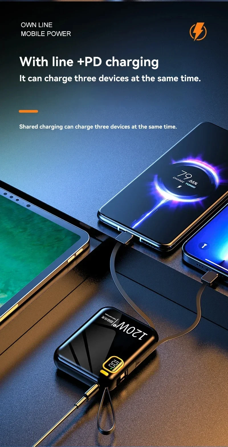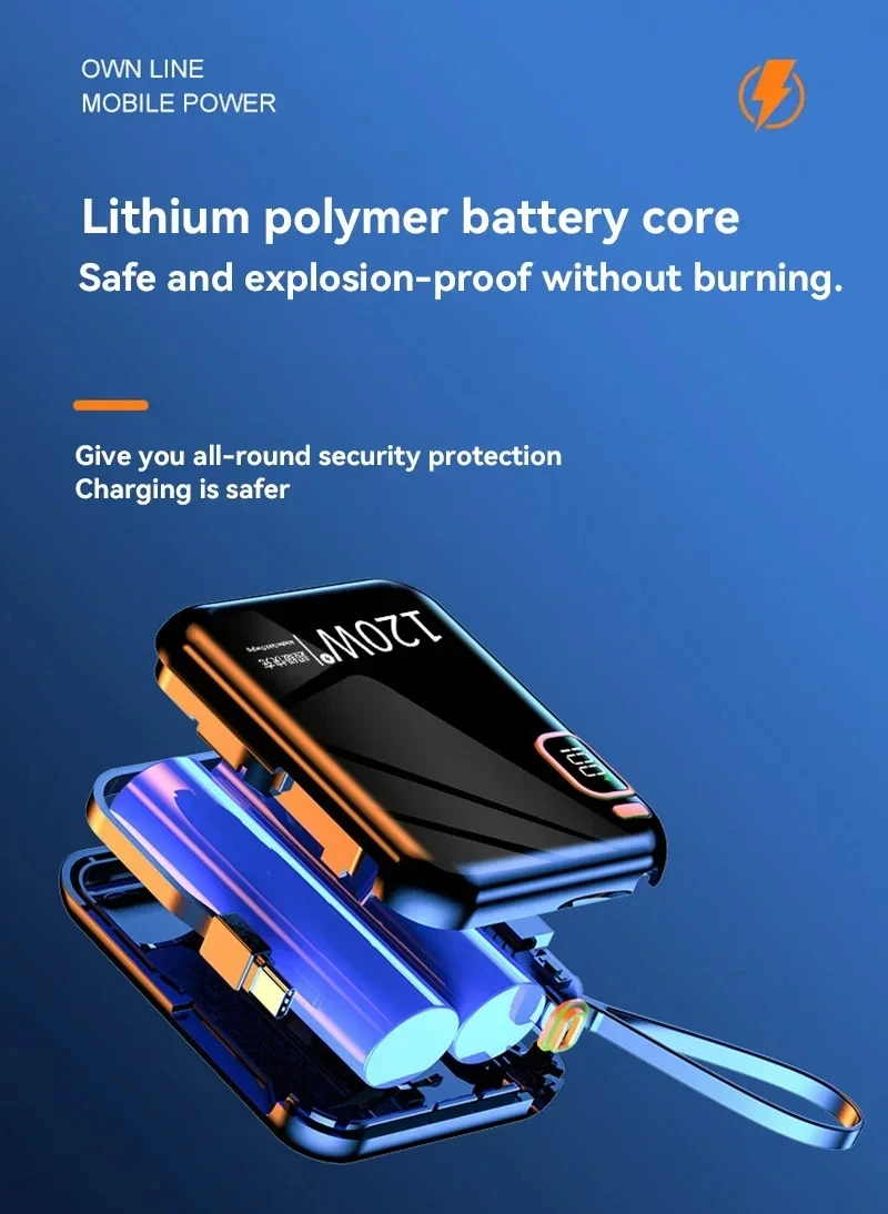 • Self – contained Double Super Fast Charging Line:Comes with its own double super fast charging lines. No need to carry extra cables. It supports different device interfaces, making it convenient to charge various devices directly.