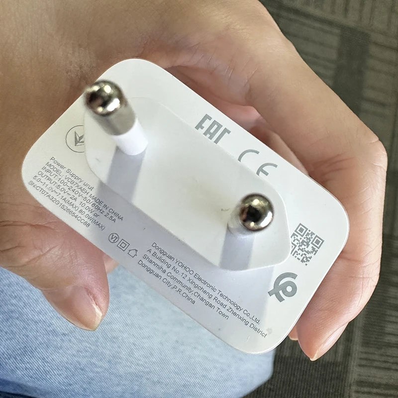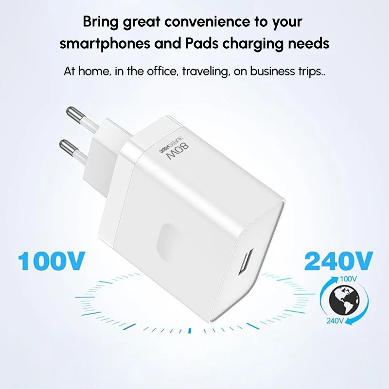 The 80W fast charger is compact, so you can simply put it in your pocket and carry it. The wall charger for oppo/oneplus/Realme supports AC voltage from 100 to 240 V for a wide input voltage range and is convenient when travelling.