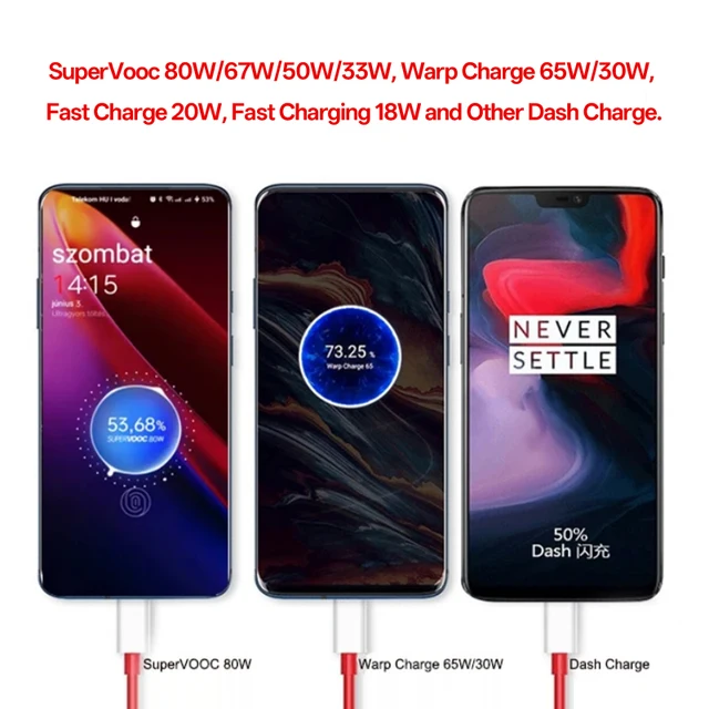 The super flash charger is equipped with a 10A 1M(3.3 ft) thick copper charging cable, specially designed for OnePlus/Realme/OPPO smartphones. It should be used with our original charger to reach a maximum current for OnPlus phones. It is also compatible with data transfer.