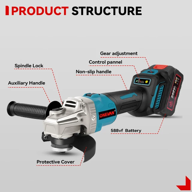 -Brushless powerful movement, high temperature resistant copper enameled wire, anti-overload, anti-burning machine. шлифовальная машинка болгарка акумуляторная