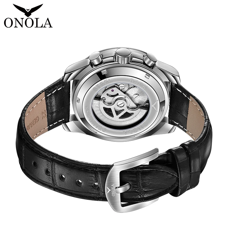 HOT Business Men's Fully Automatic Mechanical Watch ONOLA Genuine Leather Waterproof Casual Watch Men's Clock