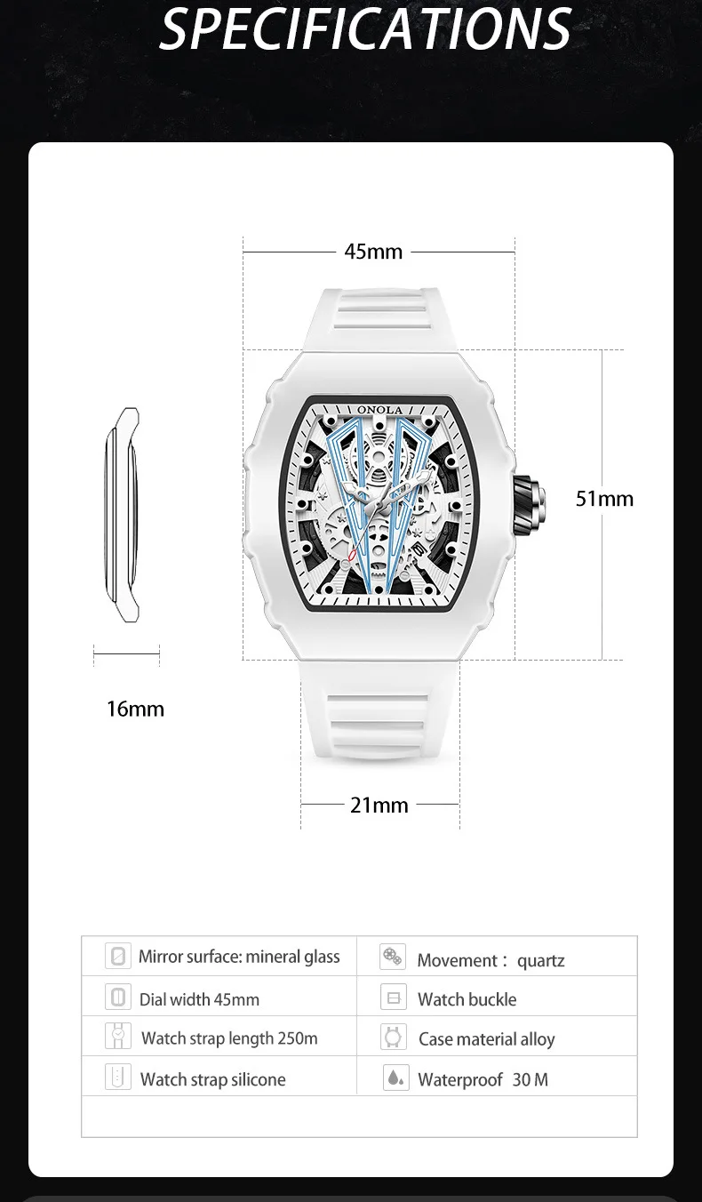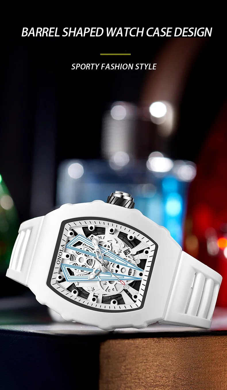ONOLA 3828 Wine Barrel Design Automatic Mechanical Watch Men Top Luxury Fashion Casual Luminous Skeleton Men Mechanical Watch