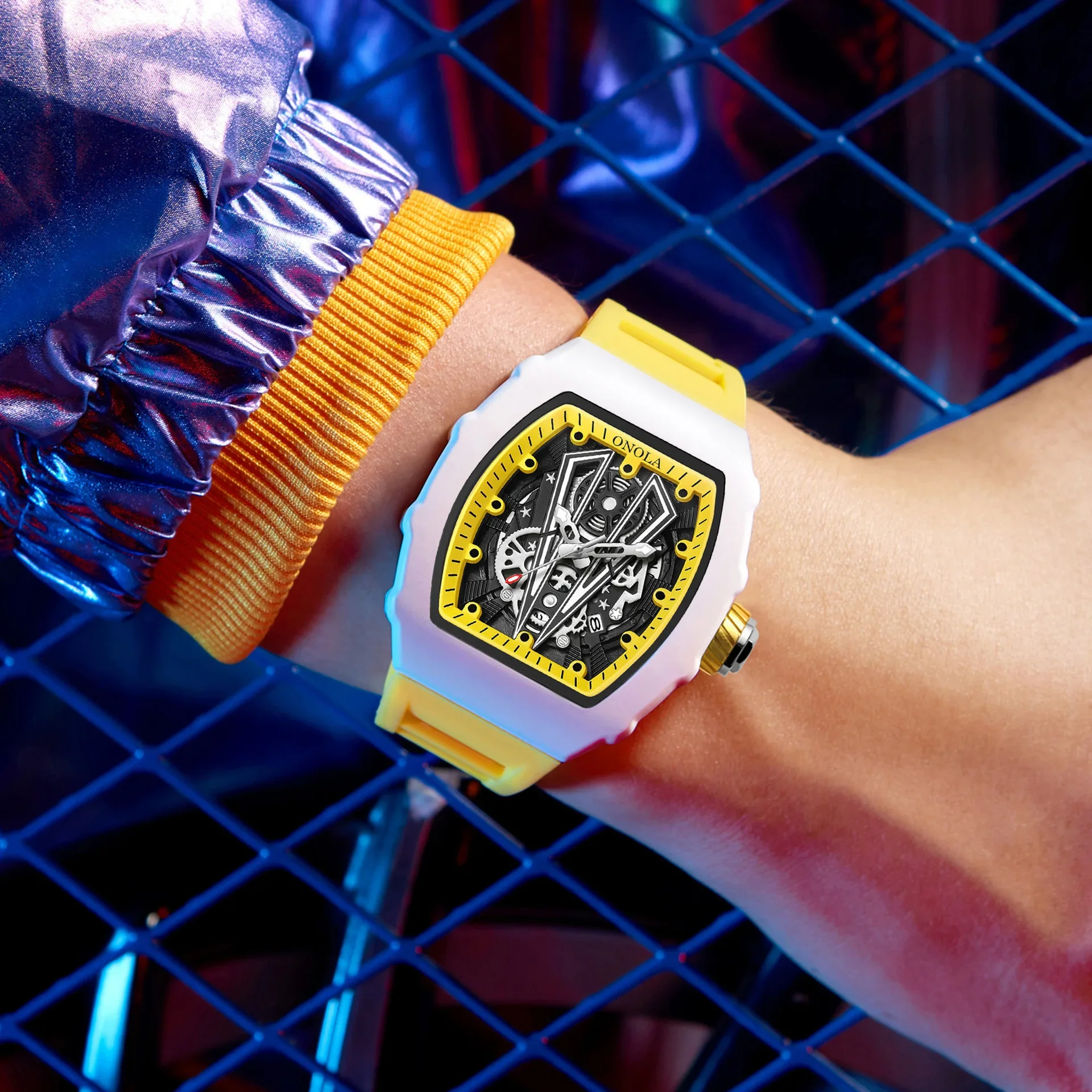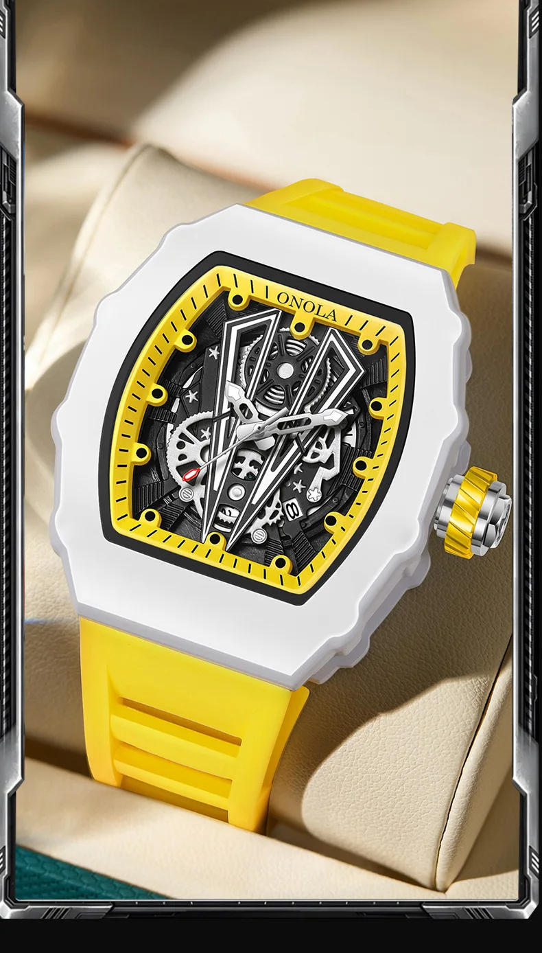 ONOLA 3836 Advanced Men's Fully Automatic Mechanical Watch with 3D Stereoscopic Hollow Design for Casual Men's Mechanical Clock