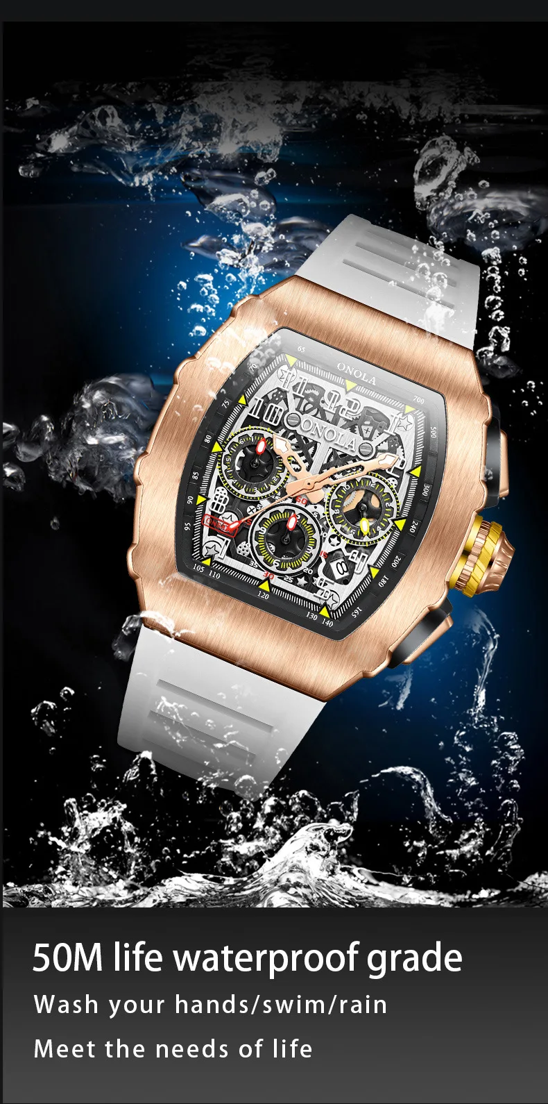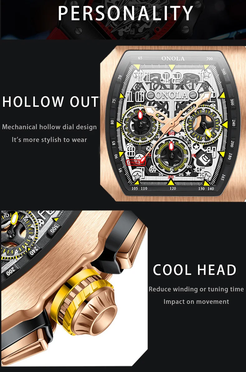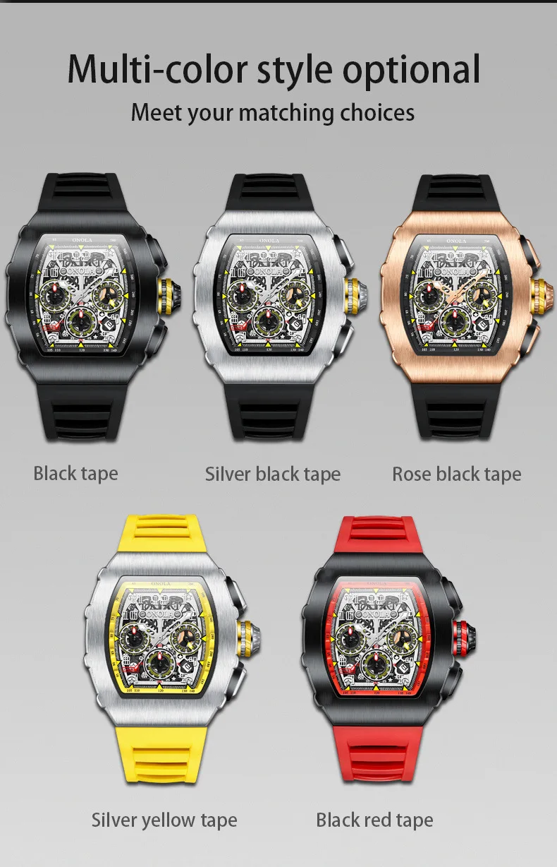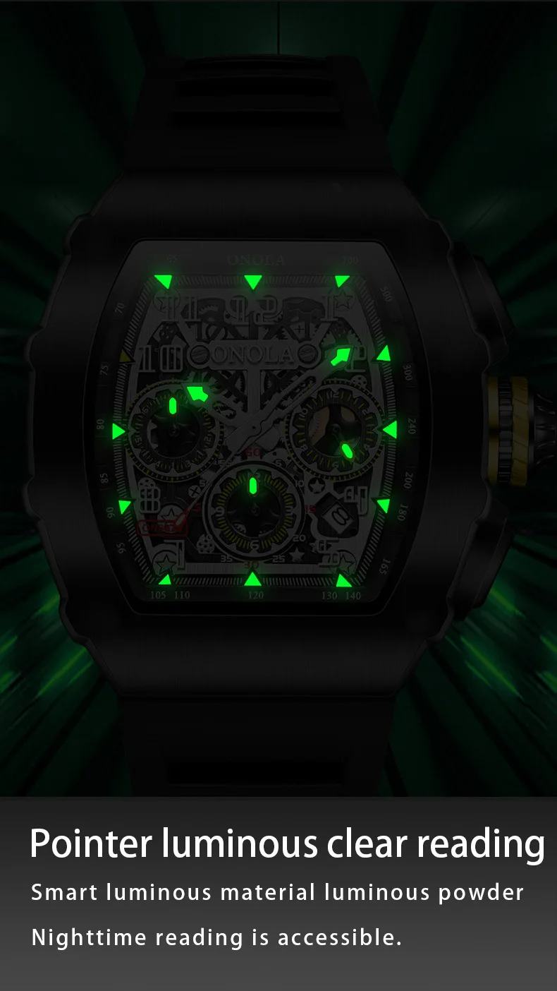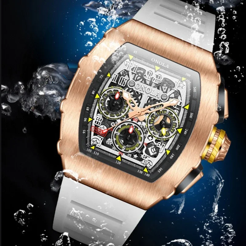 ONOLA 6826 Fashion Sports Silicone Strap Watches for Man Luminous Waterproof Chronograph Multi Functional Watch Men Reloj Hombre