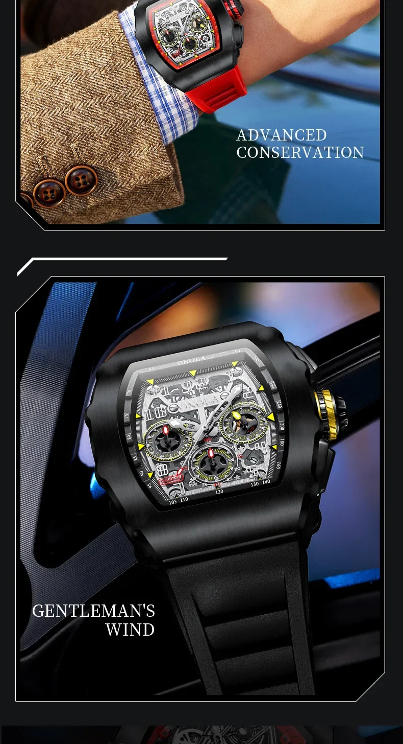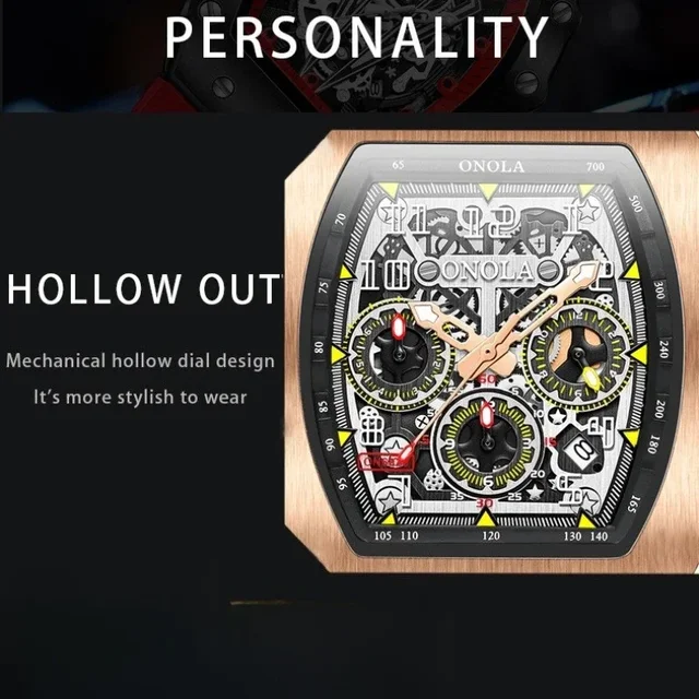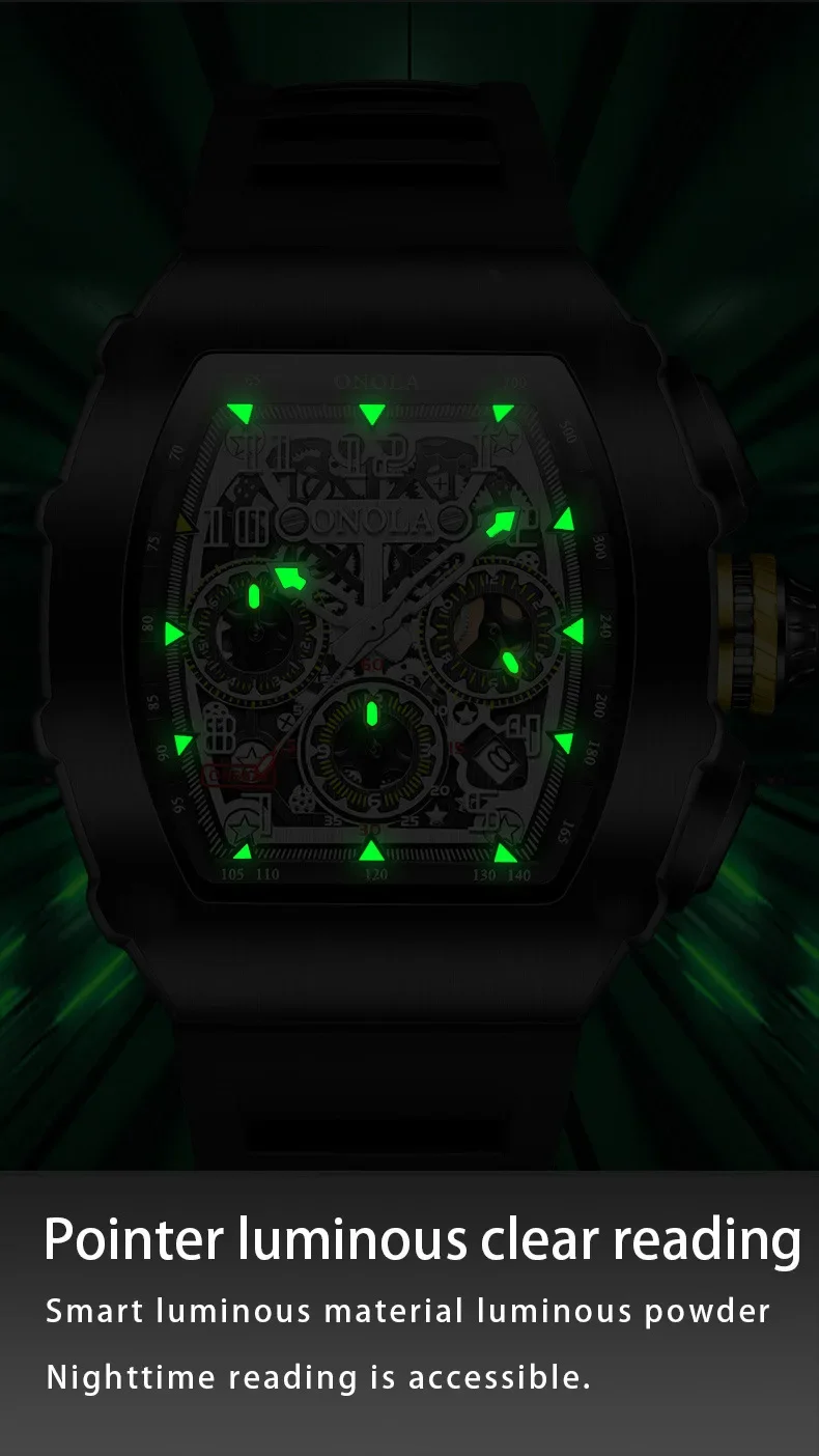 ONOLA 6826GM Fashion Silicone Strap Watch Men Luminous Waterproof Chronograph Multi Functional Watches for Men Reloj Hombre