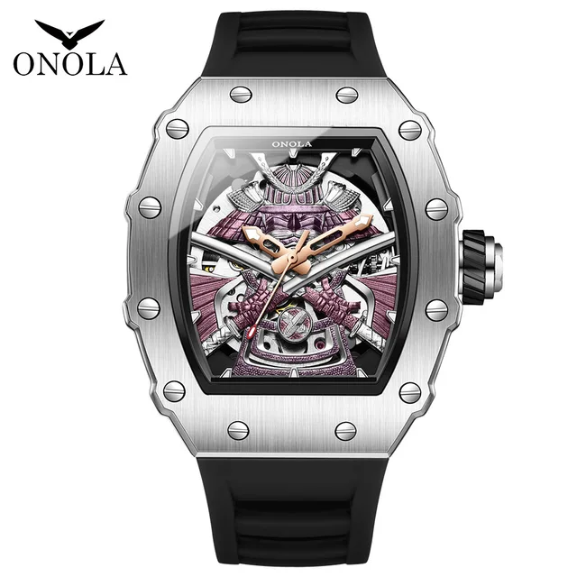 ONOLA Automatic Movement Mechanical Watches for Men Fashion Black-warrior Hollow High Quality Waterproof Mens Watch Reloj Hombre relogio masculino часы мужские наручные