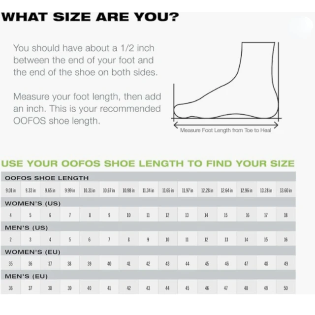 Backed by science – research has shown that compared to traditional footwear, OOFOS reduces load, reduces compression force, and supports foot flexibility. Therefore, each OOFOS style comes with an American Foot Medical Association acceptance seal!