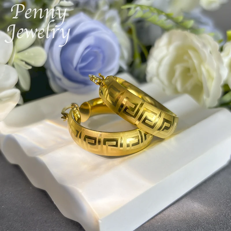 Fashion 18K Gold Plated Hoop Earrings for Women Copper Vintage Circle Earring Party Wedding Gifts Italian African Jewelry Sets