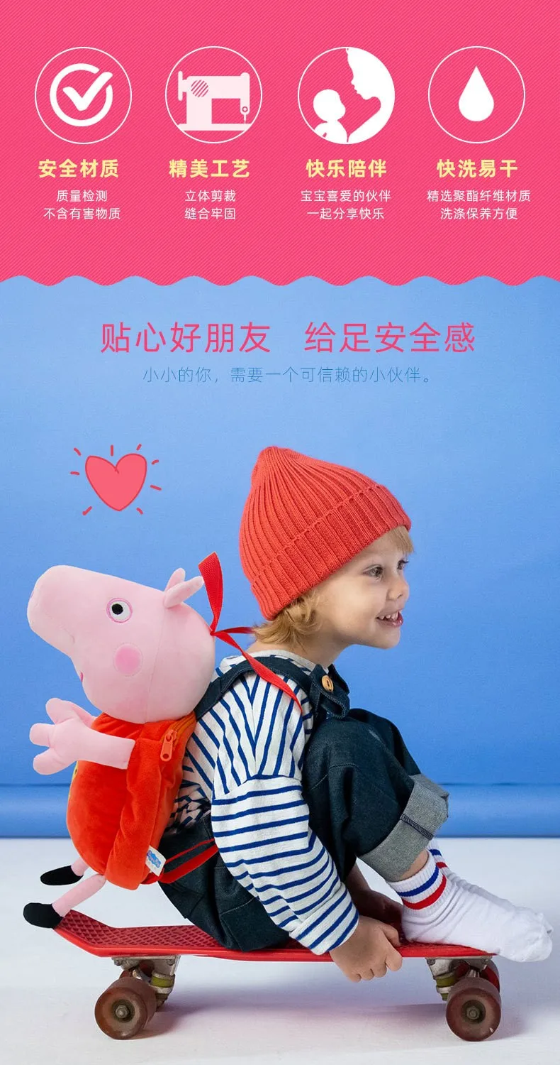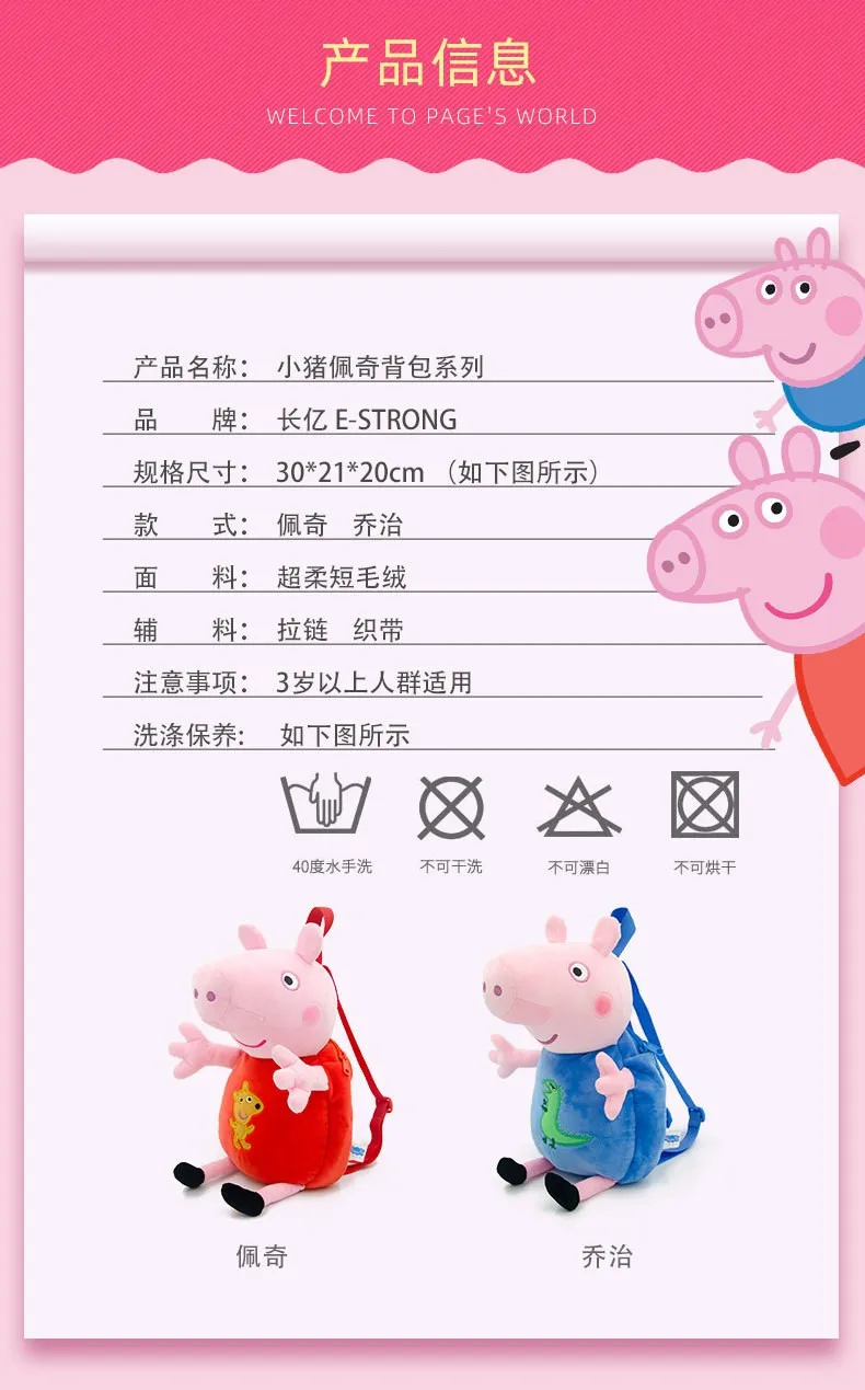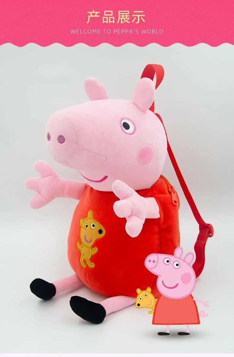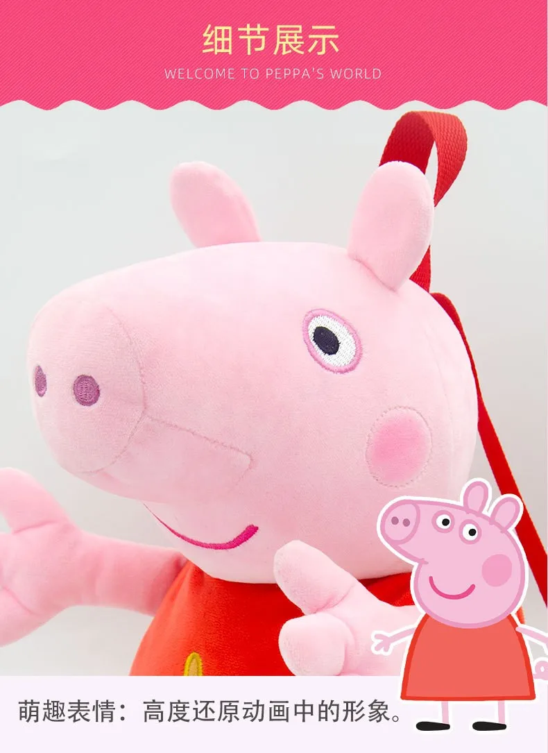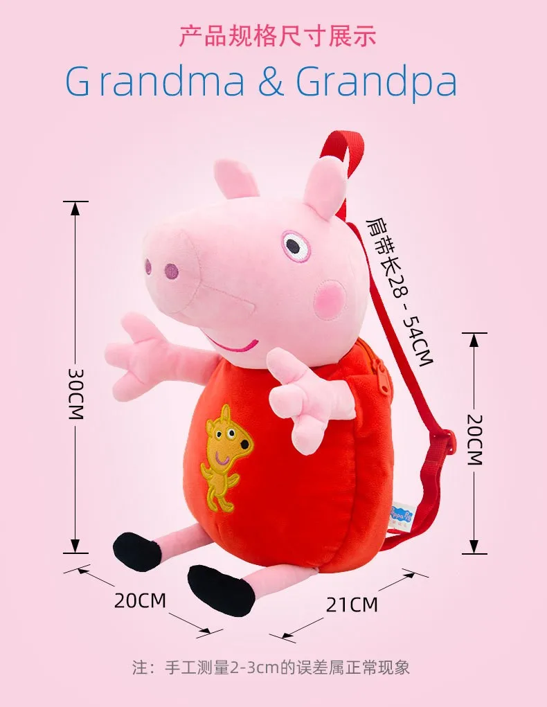 Original 30cm Peppa Pig Backpack Stereoscopic Anime Doll Plush Backpack Boys Girl Soft Plush Toy Bag Children’s Holiday Gifts