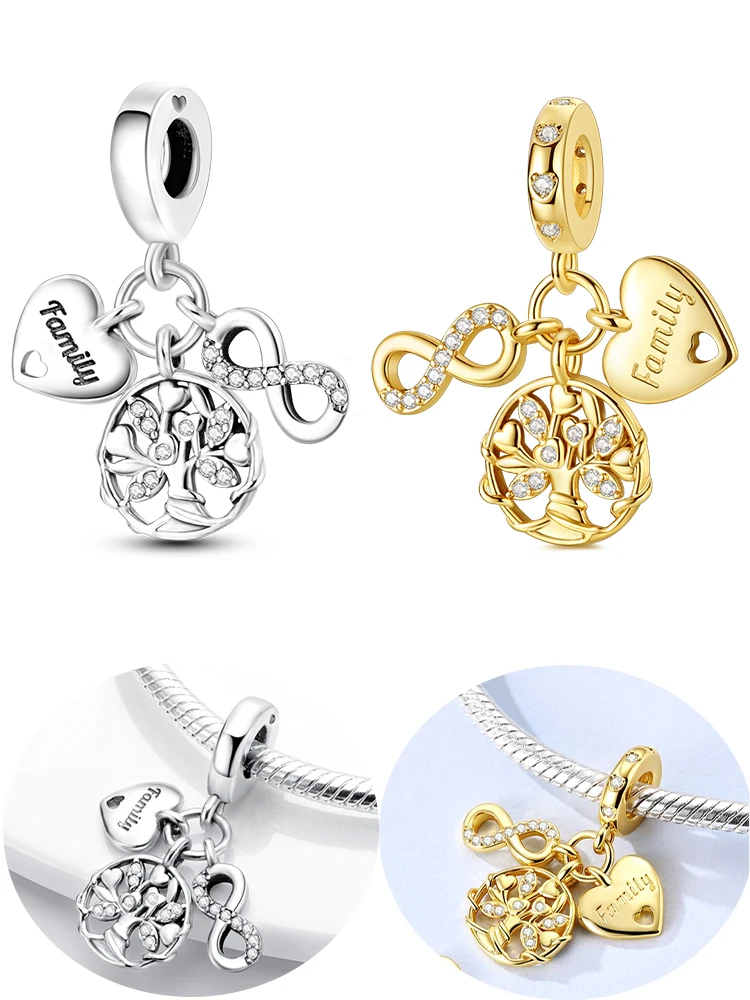 Original Charm 925 Silver Two-Color Eternal Symbol Tree Of Life Charms Fits 3mm Original Bracelet For Women DIY Jewelry Gift Hot