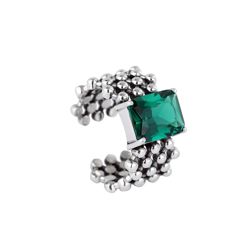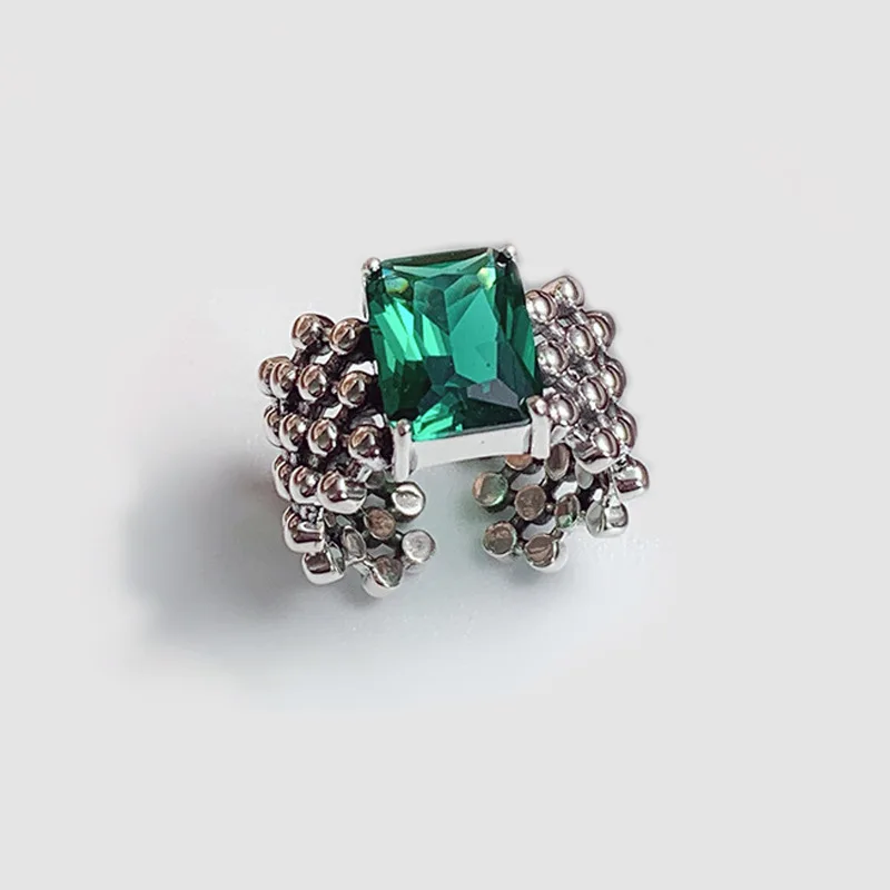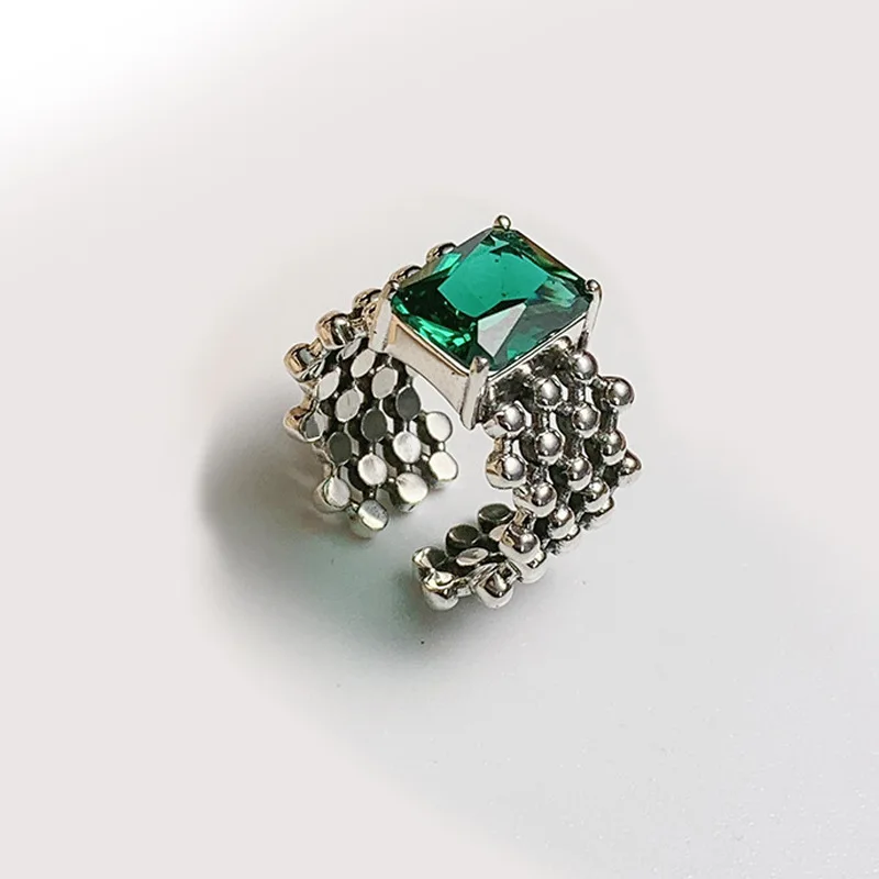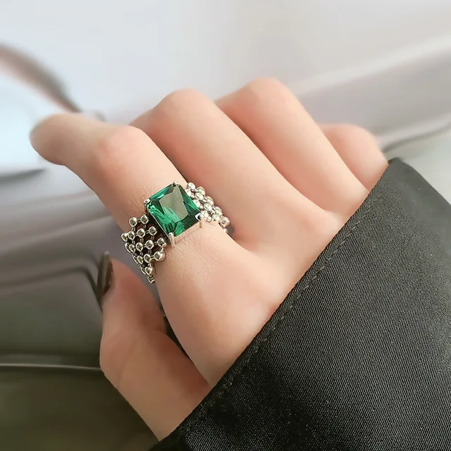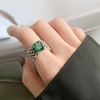 Trendy Green Zircon Vintage Silver Color Wedding Bands Engagement Rings For Women Men Minimalist Jewelry
