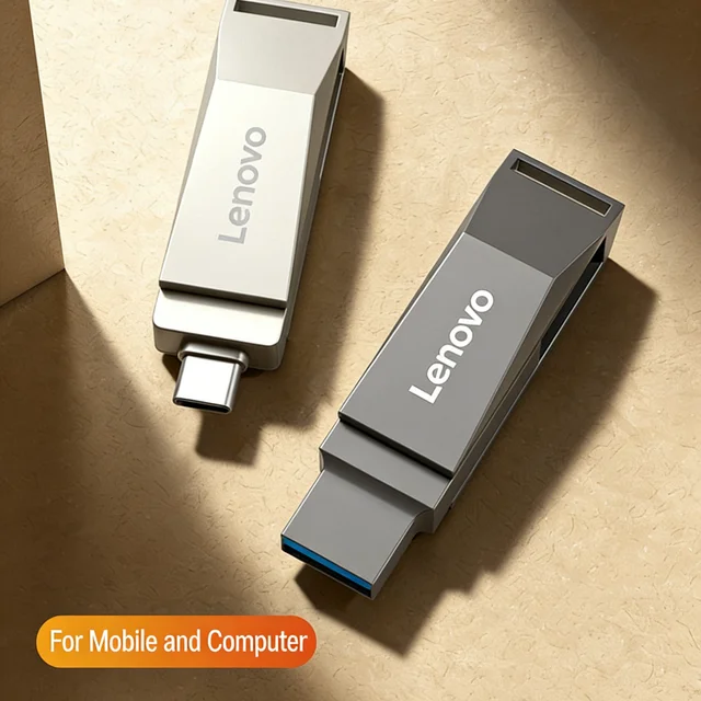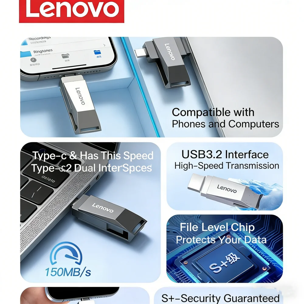 Original Lenovo 2TB Pendrive USB 3.2 Flash Drive Metal U Disk 2 IN 1 OTG 1024GB 128GB 512gb 1TB Pen Drives For Phone Computer