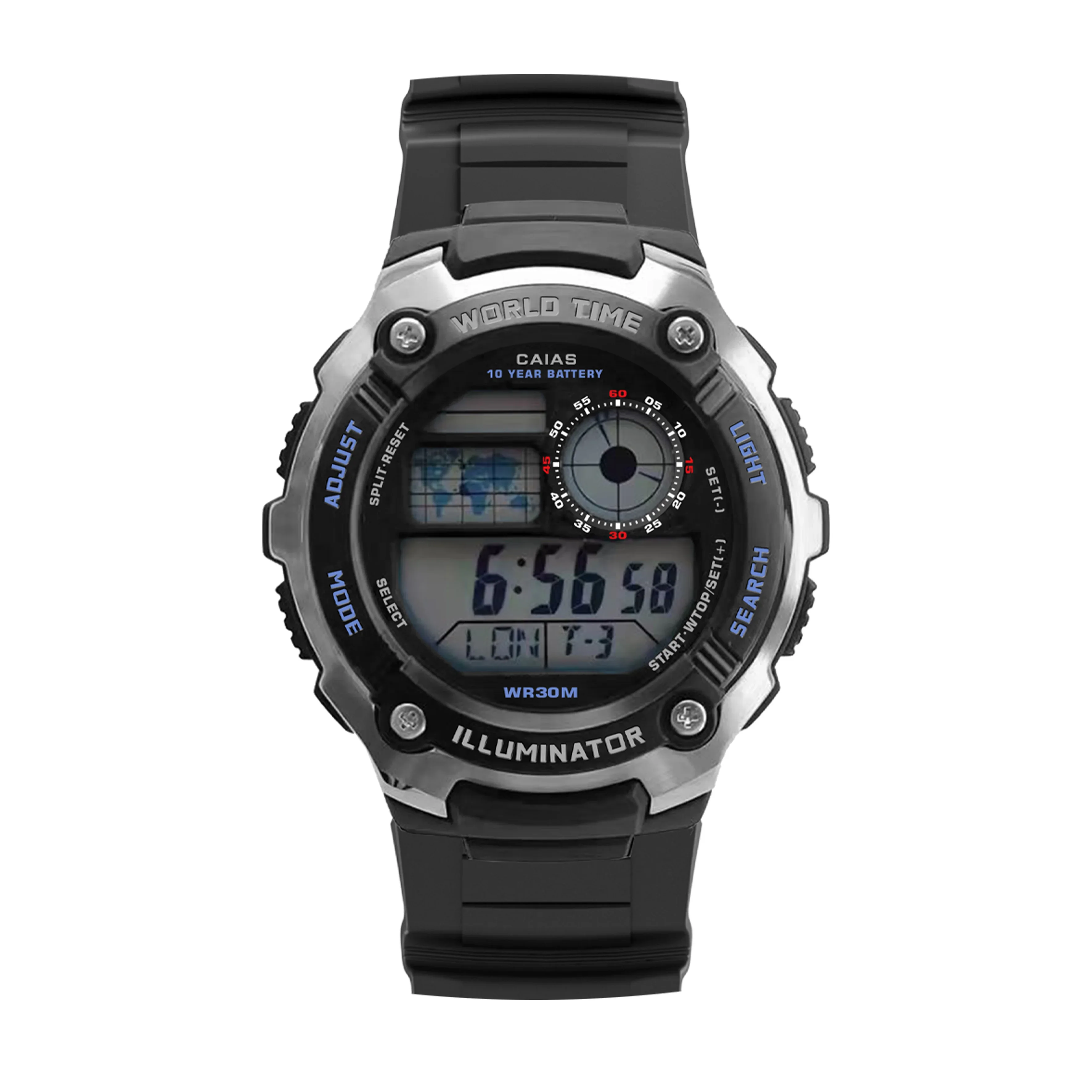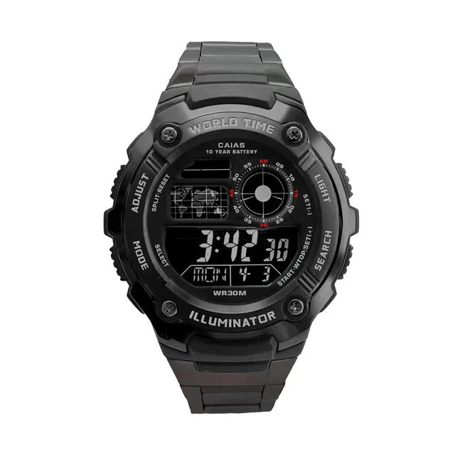 Digital Sports Electronic Unisex Watch World Time Fully Functional Steel Strap Alloy Band LED Oak 1200 Series