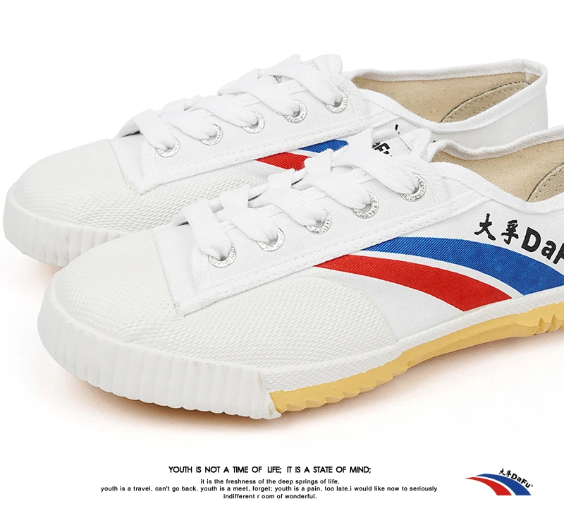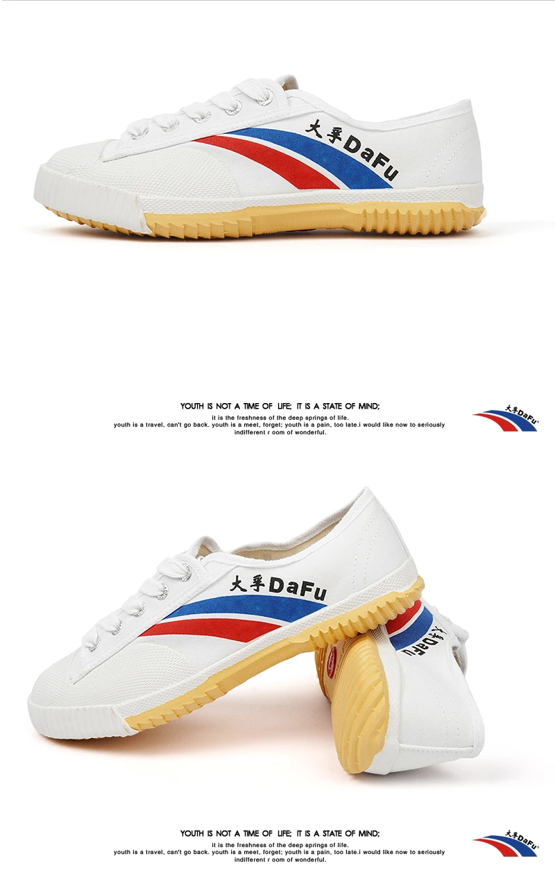 The official Chinese Dafu are manufactured by either Top One or DaFu in China. It’s important that the distinction is made between the Chinese DafuFeiyues, which are still made as a sporting staple, and the American Dafu that are a fashion and lifestyle shoe: an American company having acquired the rights to produce shoes with the Dafu logo and branding in 2006.