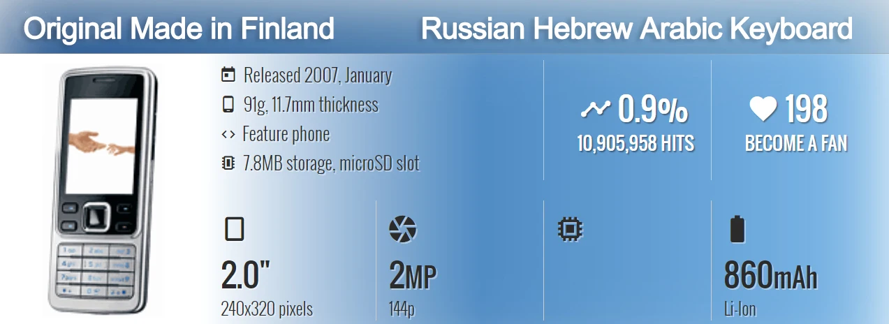 Be the first to review “Original Unlocked 6300 2MP Bluetooth Loudspeaker Cell Phone Russian Arabic Hebrew Keyboard Made in Finland”