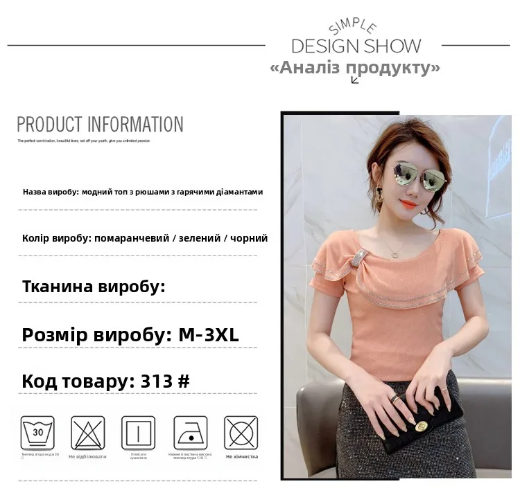 This women’s top features a trendy embellishment with sparkling crystals, adding a touch of elegance to your summer wardrobe.
