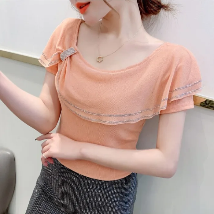Be the first to review “oulder Bared Me T-irt Women’s ort Sve Glittering Drill Faionable Korean Sle Slim Fit round Ne Classic”