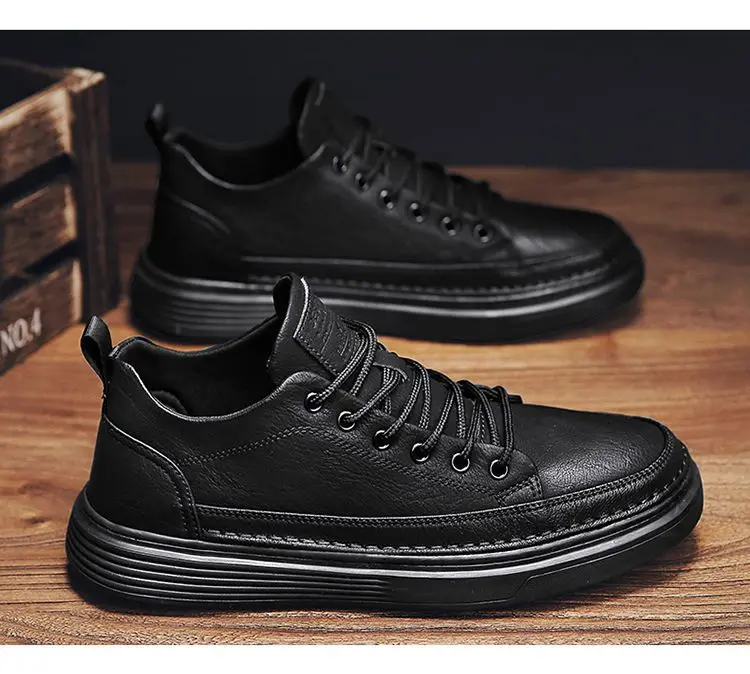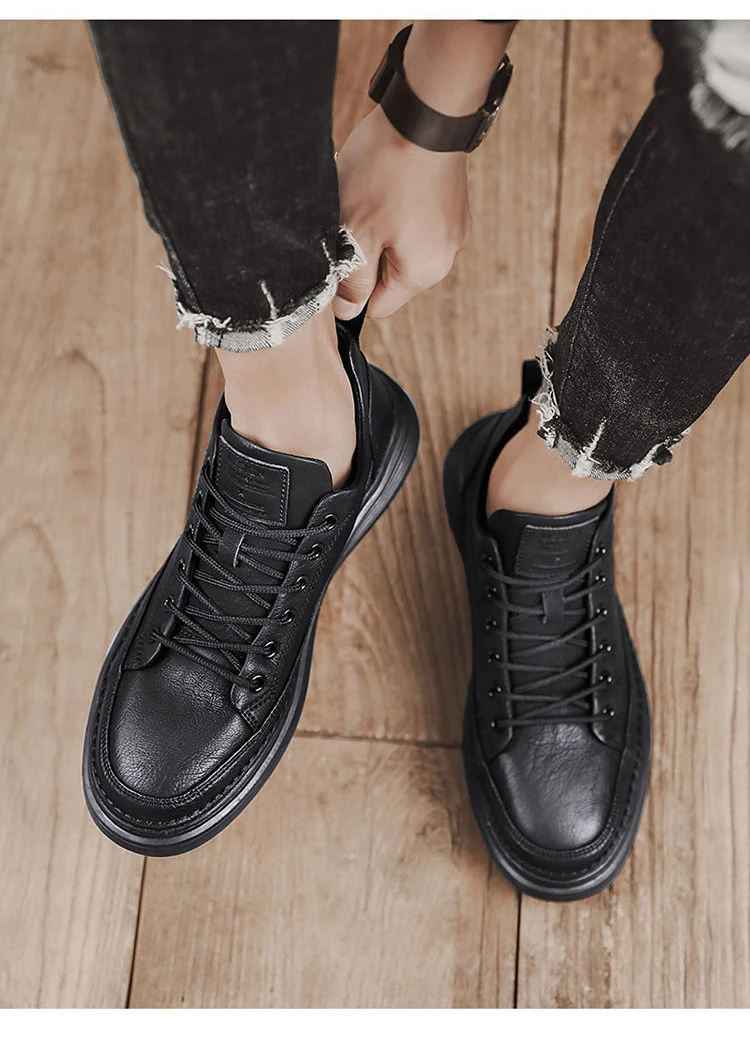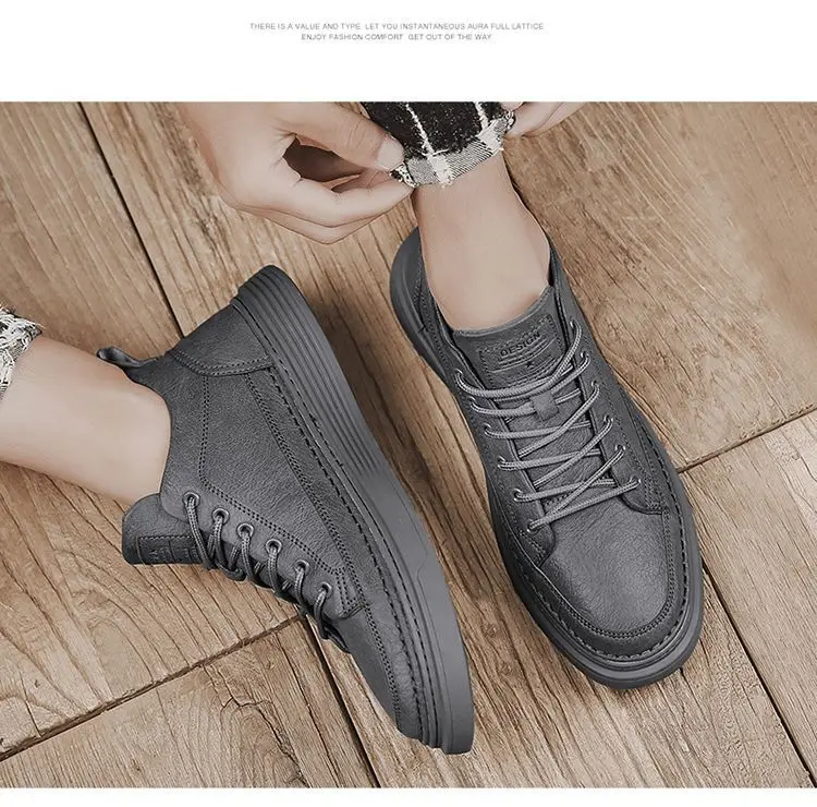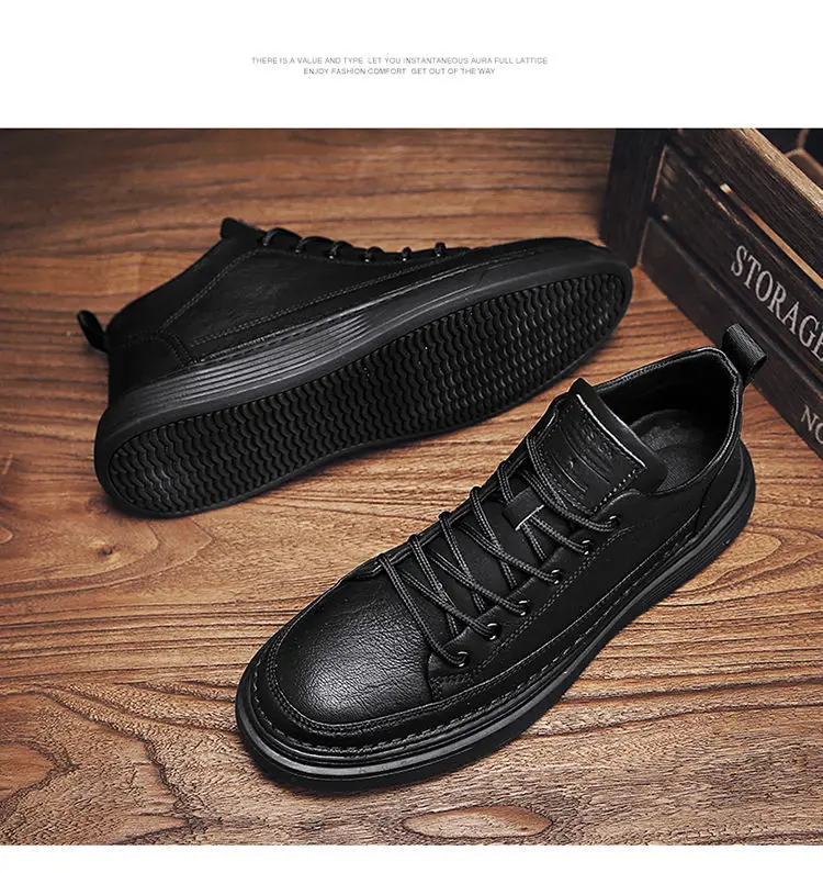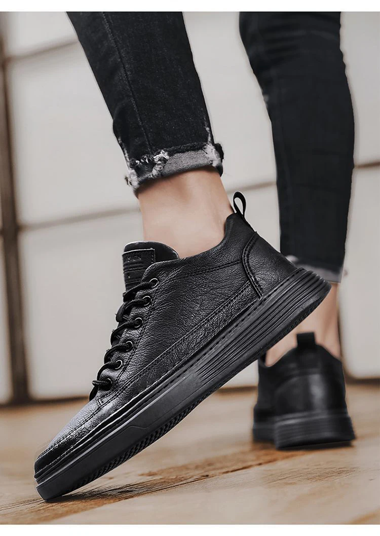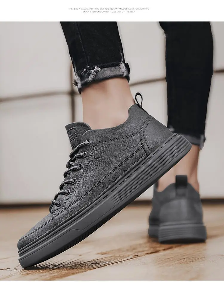Oulylan Men Leather Waterproof Casual Shoes Fashion Non Slip Board Shoes Thick Soled Lace Up Sneakers