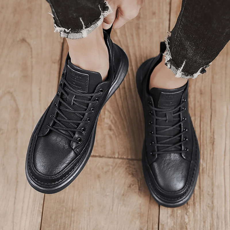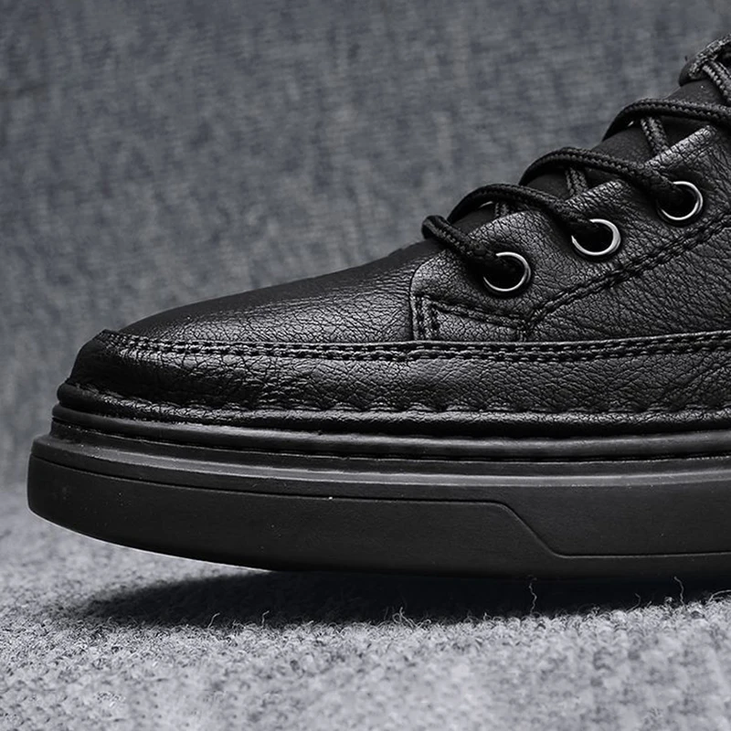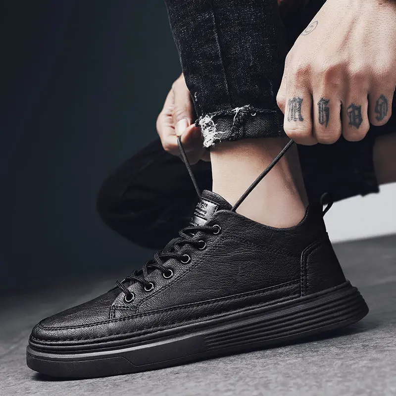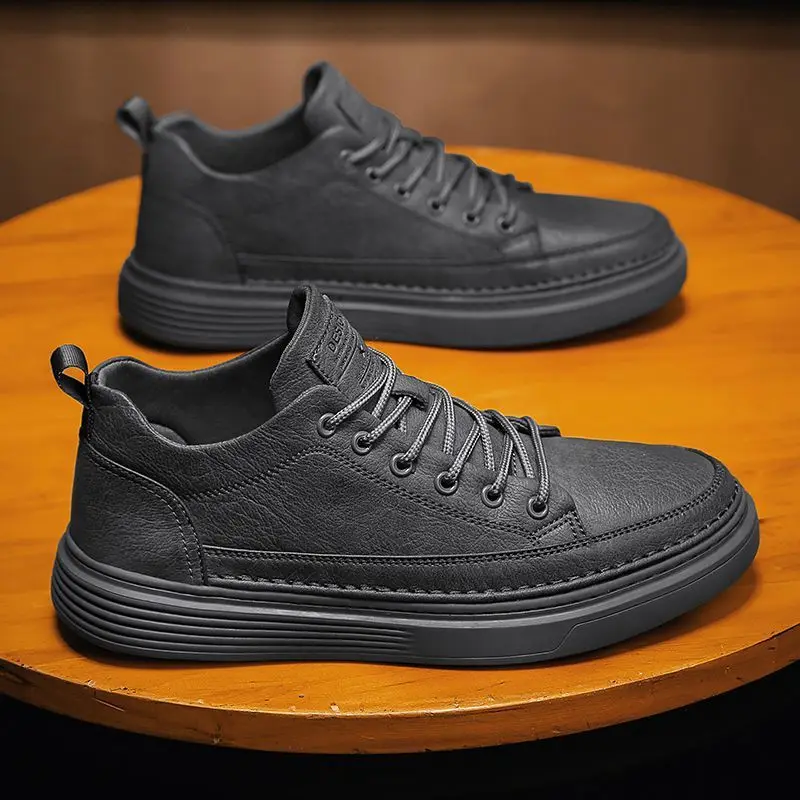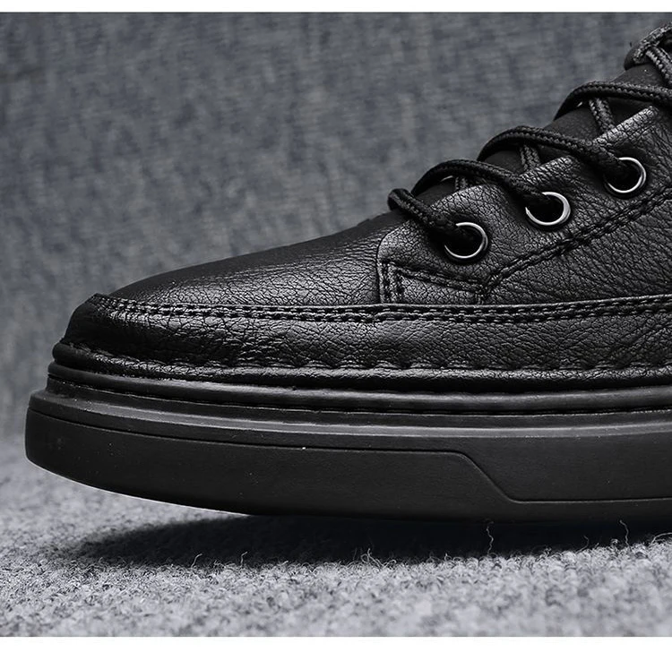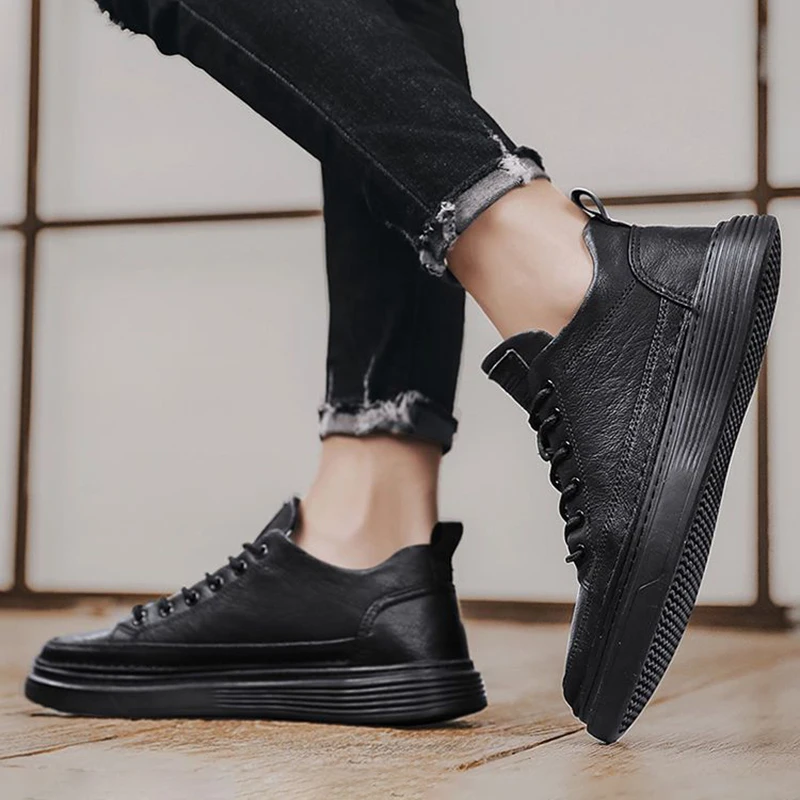 Oulylan Men Leather Waterproof Casual Shoes Fashion Non Slip Board Shoes Thick Soled Lace Up Sneakers