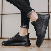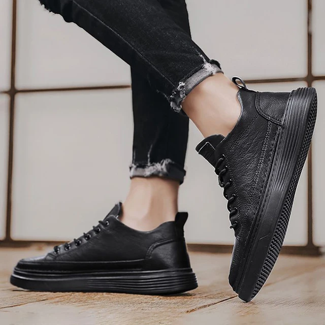 Oulylan Men Leather Waterproof Casual Shoes Fashion Non Slip Board Shoes Thick Soled Lace Up Sneakers for Men 39 To 44