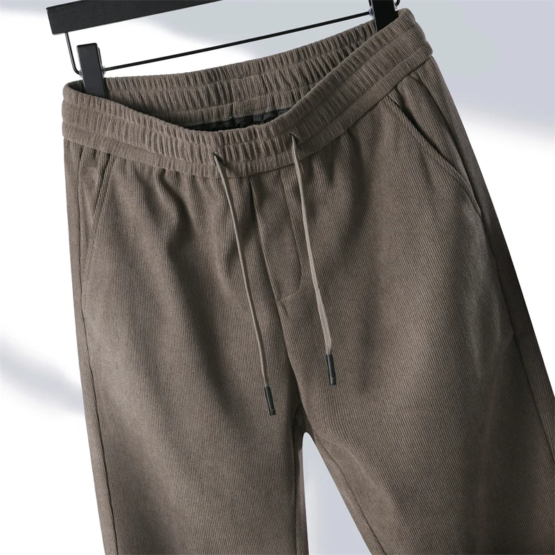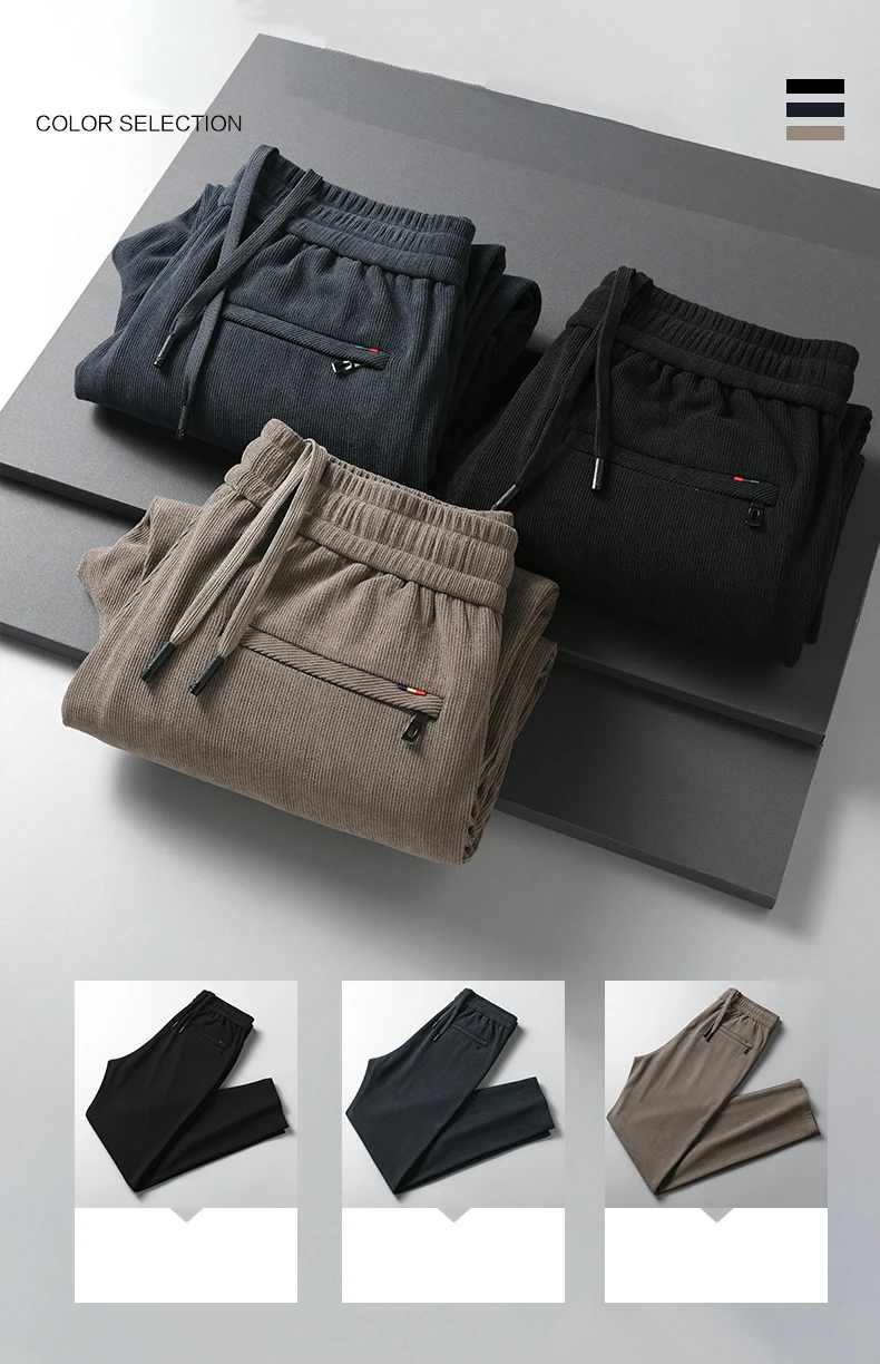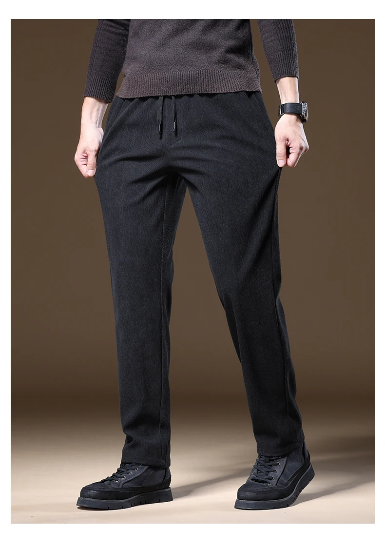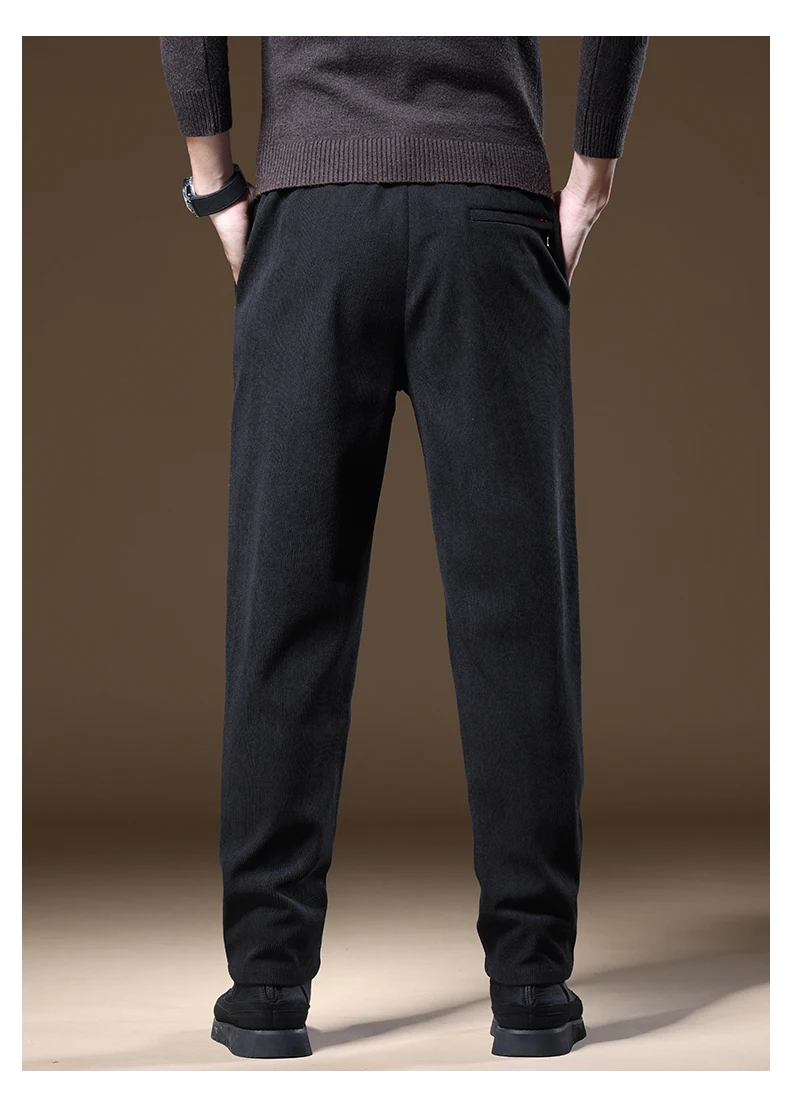 OUSSYU Brand Clothing Autumn Winter Corduroy Casual Pants Men Pocket Zipper Elastic Waist Thick Outdoors Jogging Trousers Male