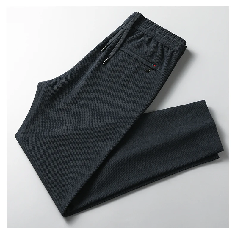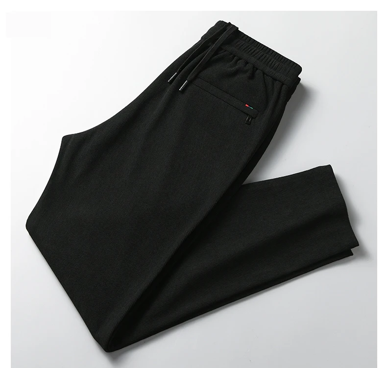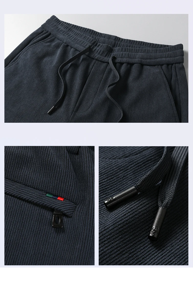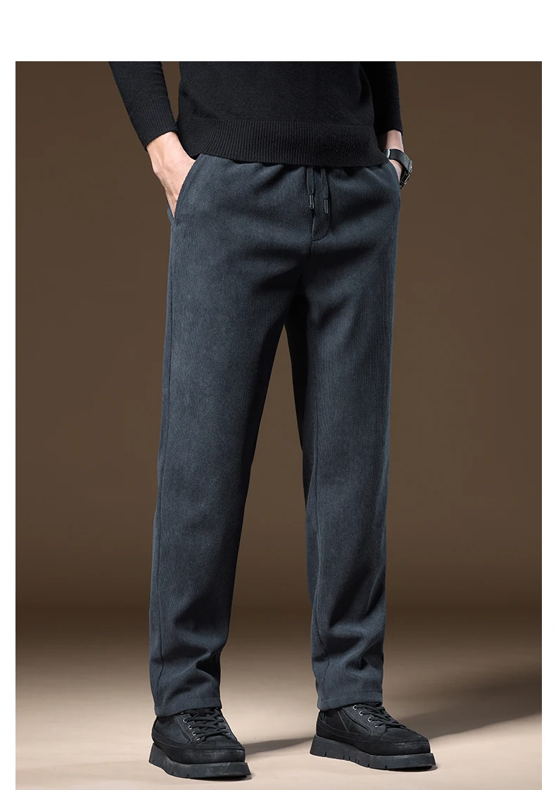 OUSSYU Brand Clothing Autumn Winter Corduroy Casual Pants Men Pocket Zipper Elastic Waist Thick Outdoors Jogging Trousers Male