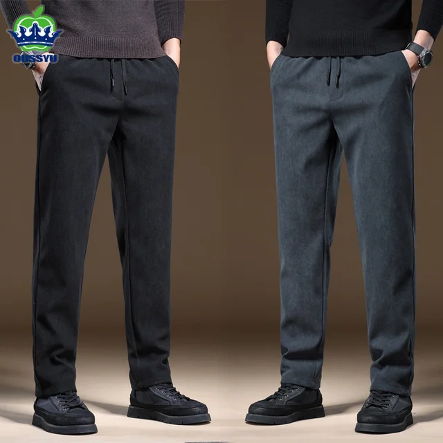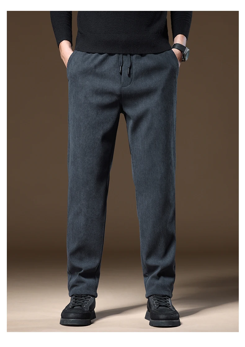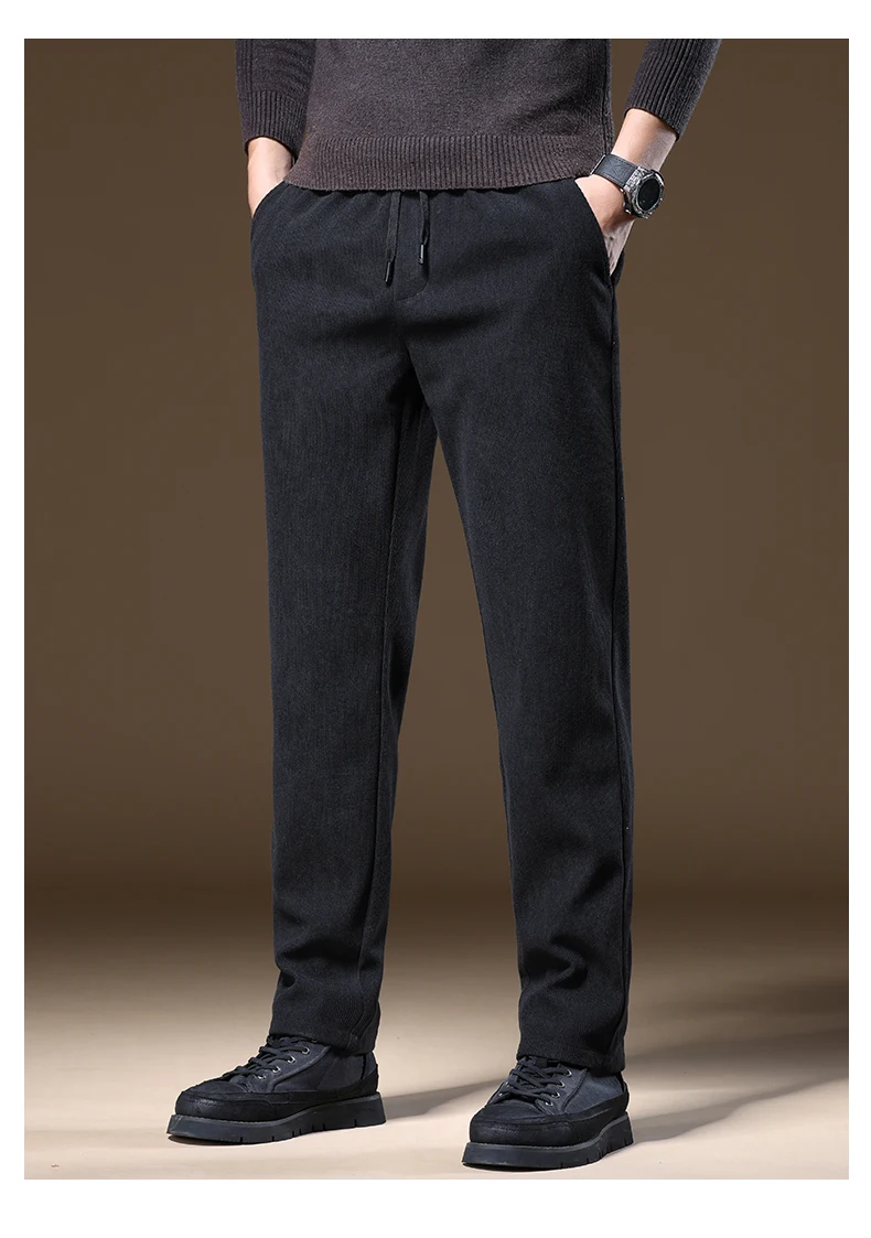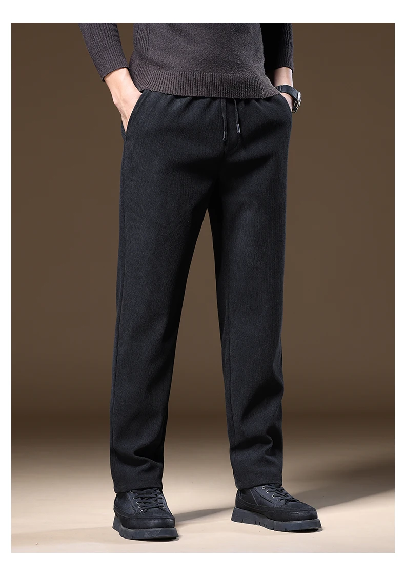OUSSYU Brand Clothing Autumn Winter Corduroy Casual Pants Men Pocket Zipper Elastic Waist Thick Outdoors