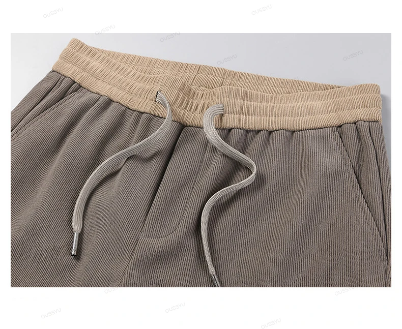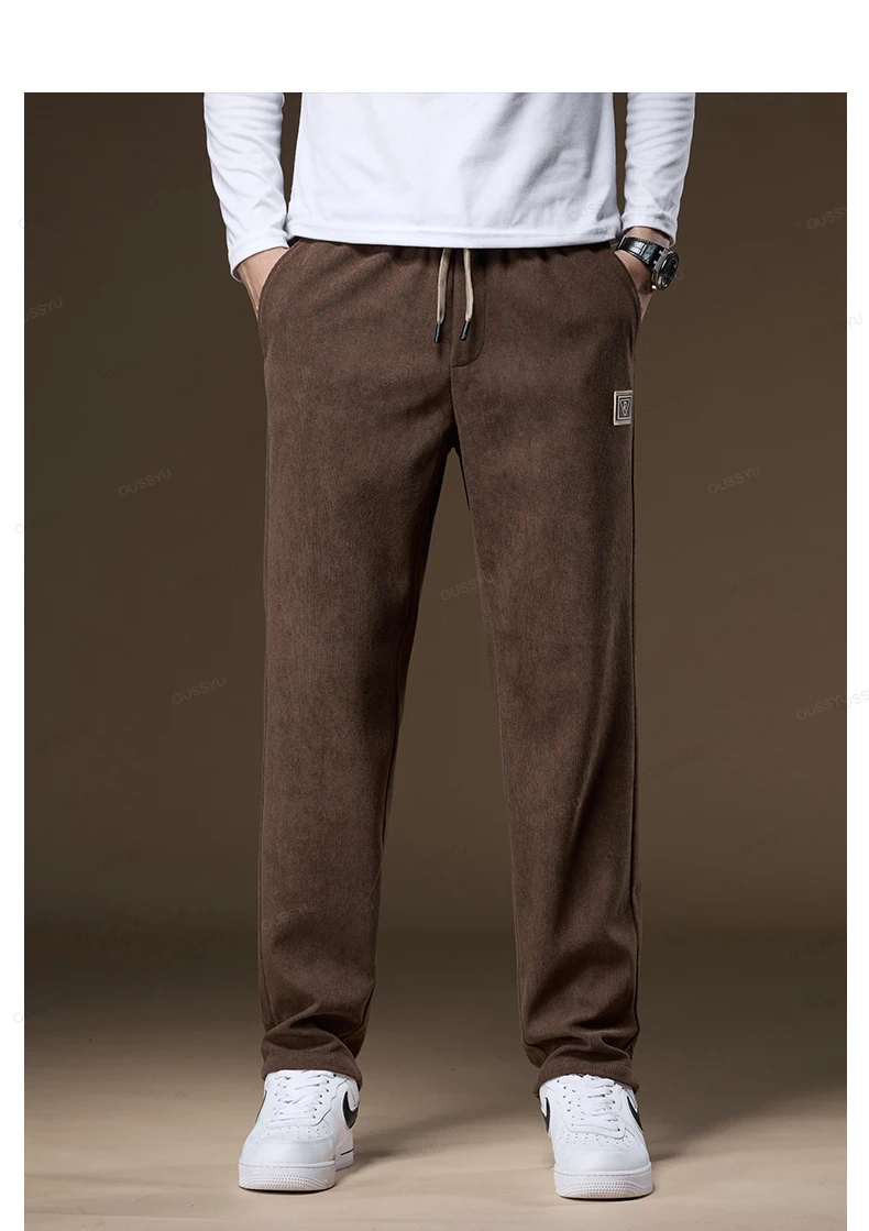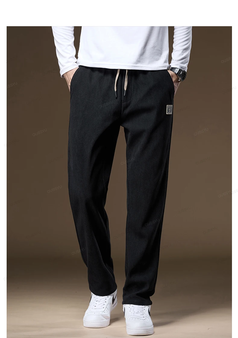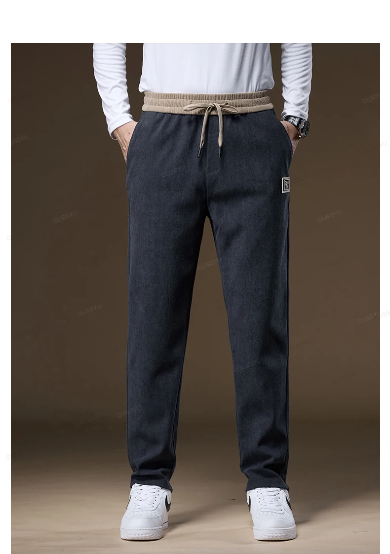OUSSYU Brand Clothing Autumn Winter Corduroy Pants Men Elastic Waist Thick Outdoors Classic Sports Casual